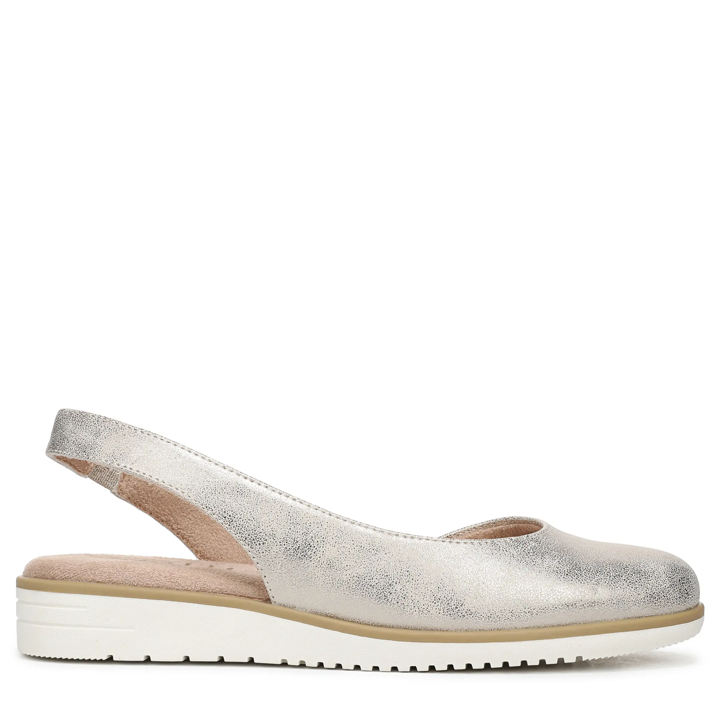 ·Slingback flats with D’Orsay side styling and a slight wedge heel