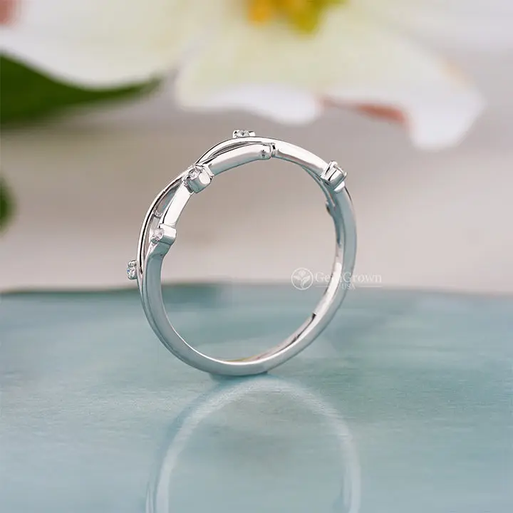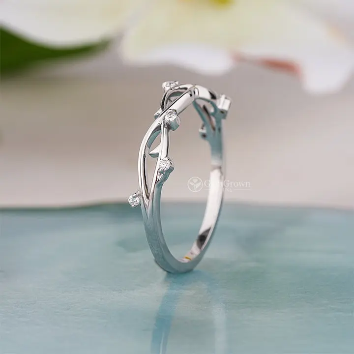 Embrace the beauty of nature with this Nature Inspired Twig Stacking Wedding Band. Handcrafted to resemble delicate twigs and organic textures, this ring captures the spirit of the forest in a timeless design. Its graceful, bark-like details and flowing silhouette make it a perfect symbol of natural love and everlasting commitment. Ideal for stacking with engagement rings or wearing alone, this band brings an earthy elegance to any jewelry collection. Available in your choice of metal finish for a truly personal touch.