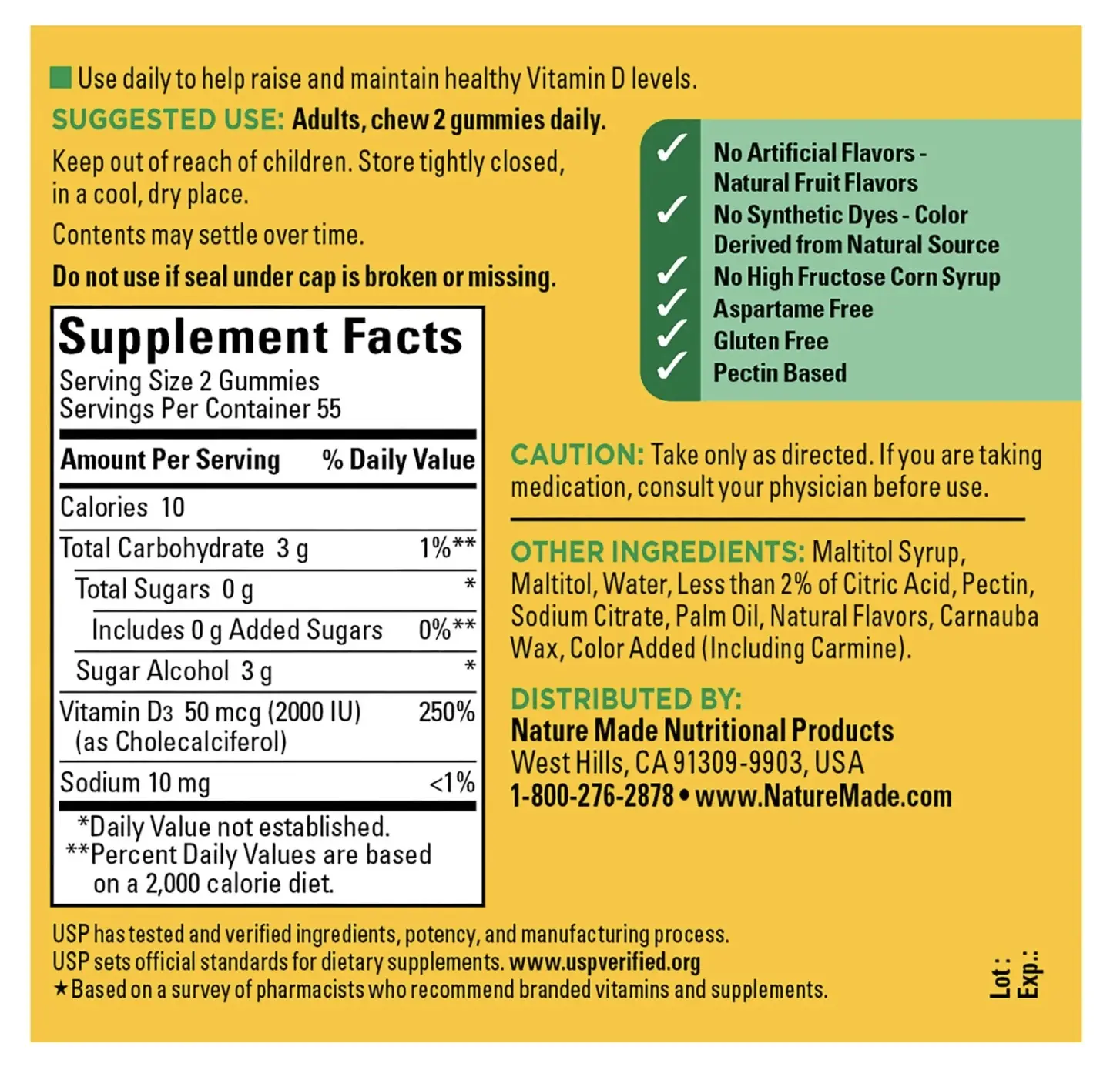 Support your immune system, bones, teeth, and muscles with Nature Made Zero Sugar‡ Vitamin D3 Gummies.