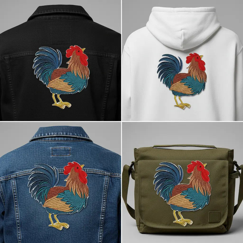 ·High-density embroidery stitching → Detailed feather texture and defined silhouette