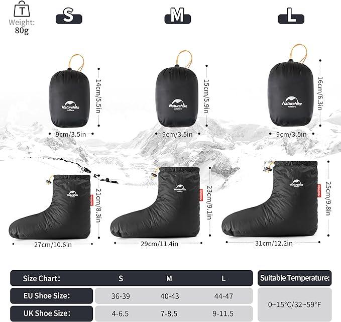 Naturehike Down Booties for Men and Women - Ultralight Winter Warm Socks, Camping Foot Warmer for Backpacking and Outdoor Adventures FathersDayGift