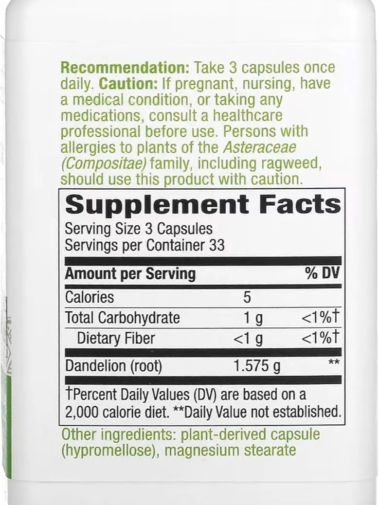 Nature’s Way Dandelion Root | 100 Vegan Capsules