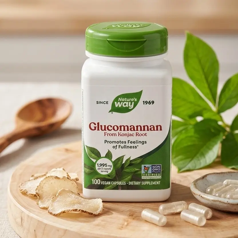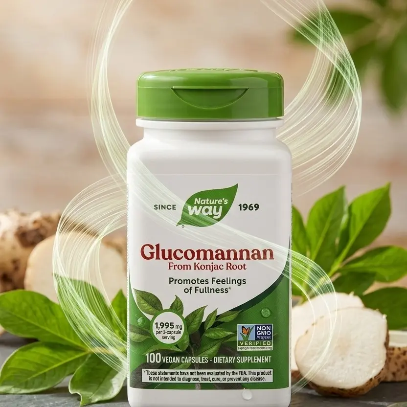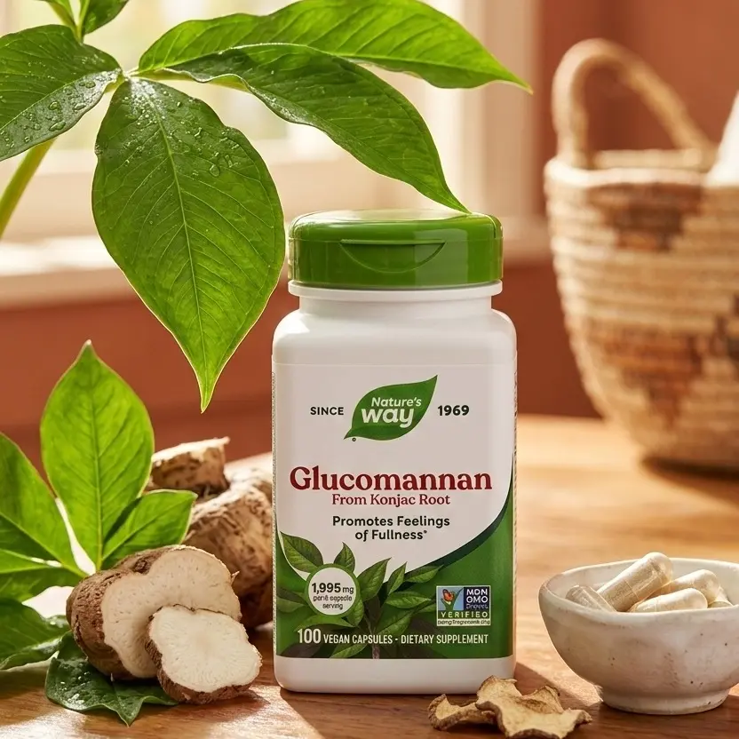 Feel fuller, longer. Nature’s Way Glucomannan is a dietary fiber sourced from the Konjac root (Amorphophallus konjac). Known for its incredible ability to absorb water, this soluble fiber expands in the stomach to promote a feeling of fullness (satiety), making it a popular choice for those managing their weight and appetite.