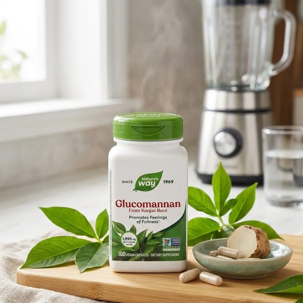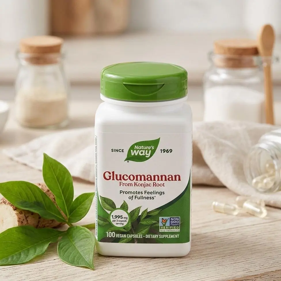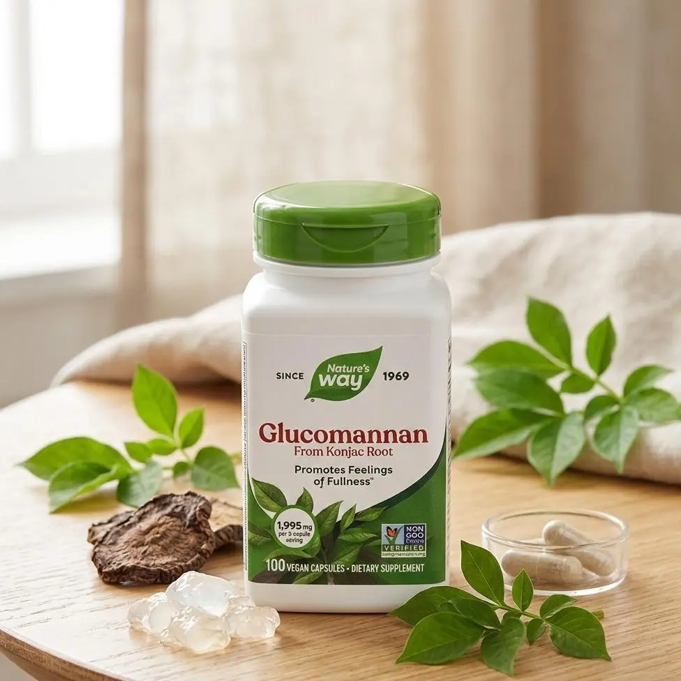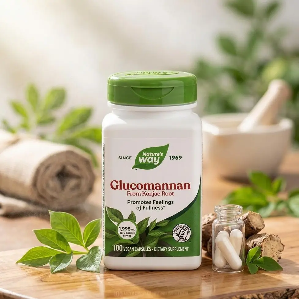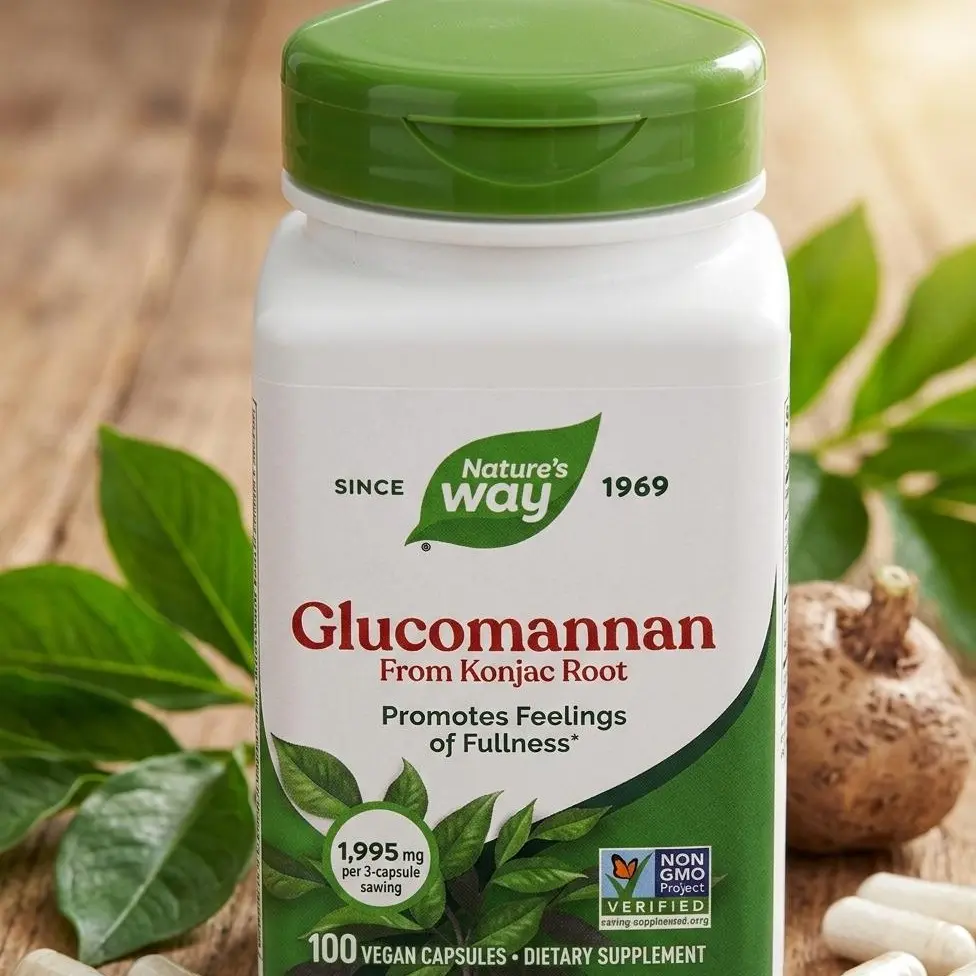 Feel fuller, longer. Nature’s Way Glucomannan is a dietary fiber sourced from the Konjac root (Amorphophallus konjac). Known for its incredible ability to absorb water, this soluble fiber expands in the stomach to promote a feeling of fullness (satiety), making it a popular choice for those managing their weight and appetite.
