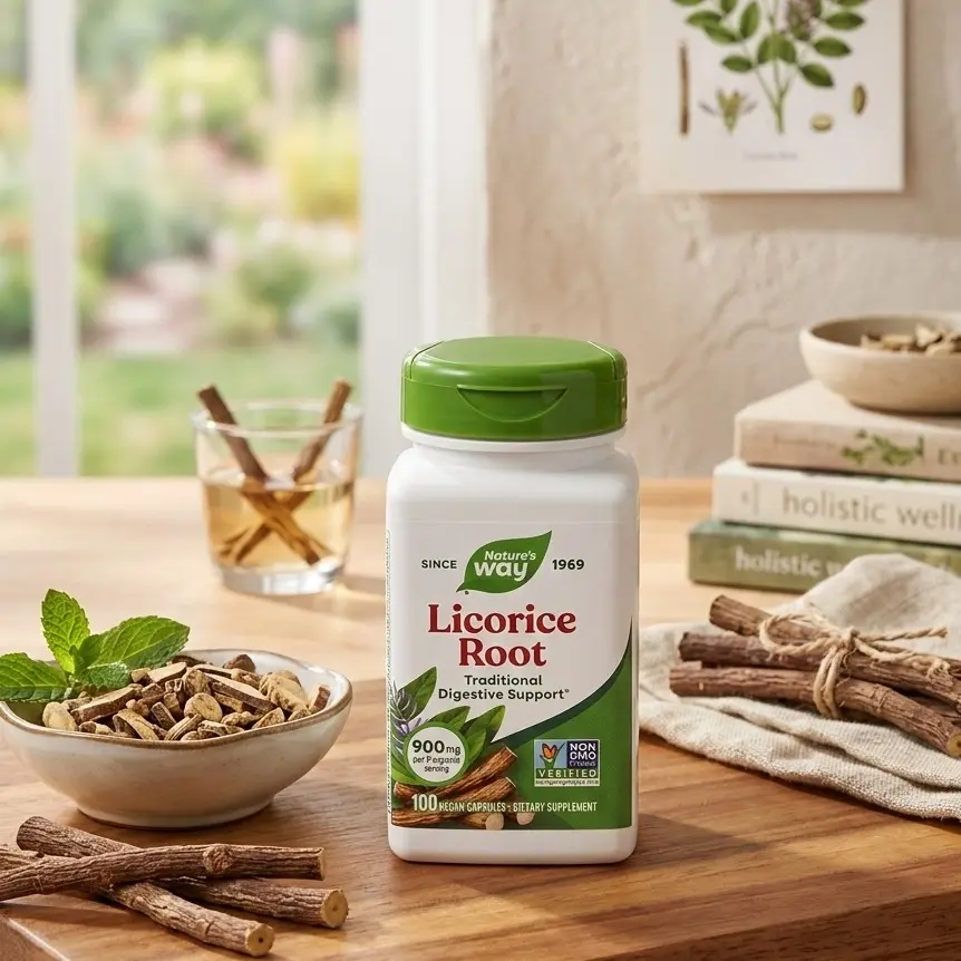 Experience the soothing power of Nature's Way Licorice Root, a traditional herbal staple used for centuries in both Eastern and Western wellness practices. Known for its distinct sweet flavor and multifaceted health benefits, Licorice Root is most commonly sought after for its ability to support digestive comfort and respiratory health.