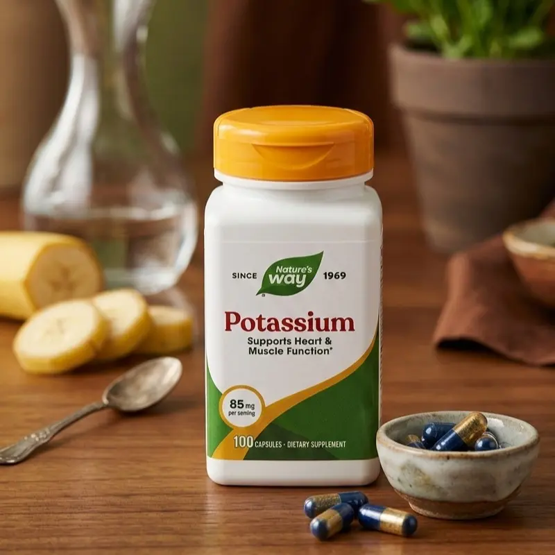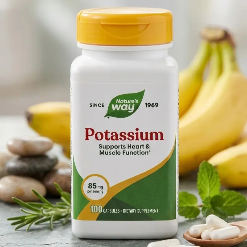 Fuel your muscles and support your heart. Nature’s Way Potassium Complex is an essential mineral supplement designed to help maintain your body’s delicate electrolyte balance. Potassium is a vital "systemic" mineral—meaning it is used by nearly every major cell group in the body—and is particularly crucial for the proper functioning of the heart, kidneys, and nervous system.