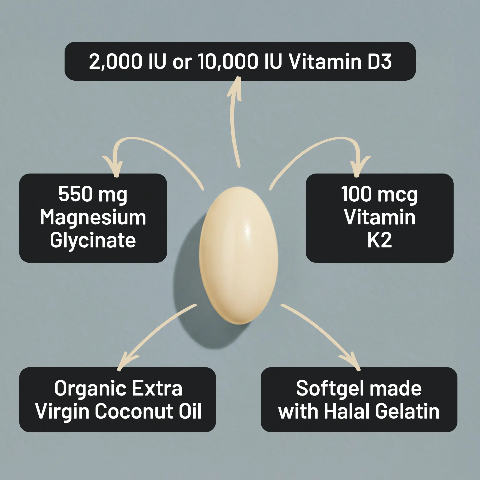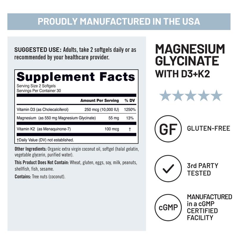 ·WITH ORGANIC COLD-PRESSED COCONUT OIL: This D3 K2 Magnesium Glycinate supplement is made with organic cold-pressed coconut oil to further enhance absorption.*