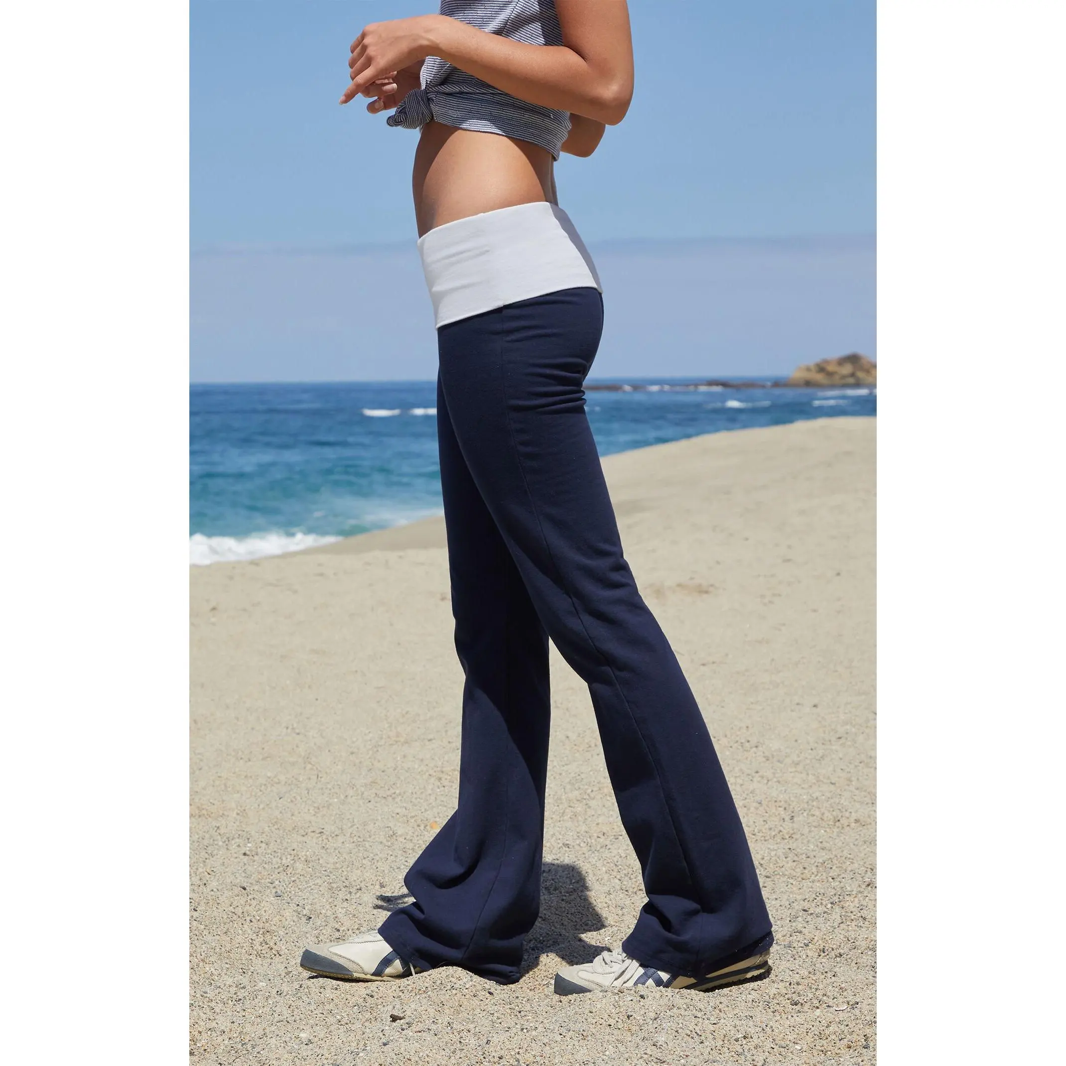 Keep it laid-back and stylish in the Navy Priscilla Flare Pants from John Galt. These slim-fit pants feature a colorblock design, fold-over elastic waistband that sits low on the waist, and flared leg openings for an easygoing, flattering fit.