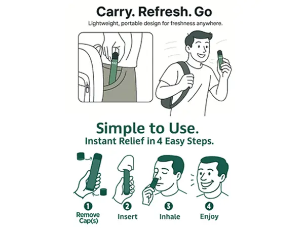 ·Instant Cooling Sensation: Each inhale delivers a refreshing aromatic vapor burst in just 1 second—10x FASTER and STRONG than traditional inhalers.