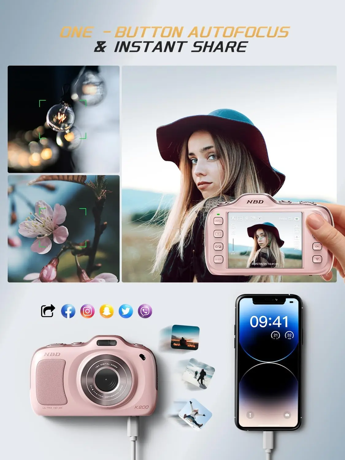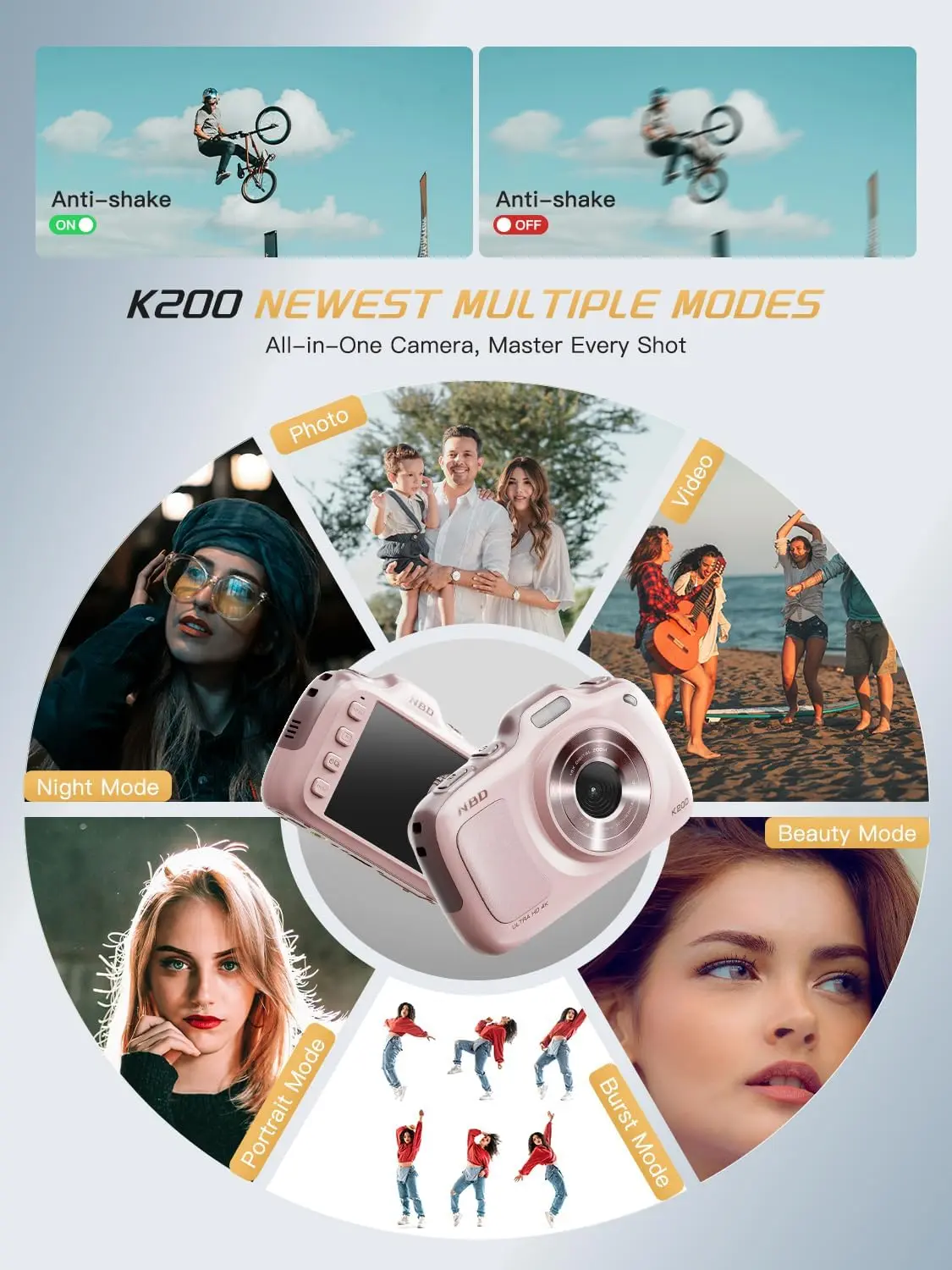 Whether you’re capturing your child’s first steps, documenting a breathtaking sunset, or creating engaging vlogs for social media, the NBD K200 is designed to turn every moment into a lasting memory. Its compact, ergonomic design fits comfortably in your hand, making it the ideal companion for everyday adventures and special occasions alike.