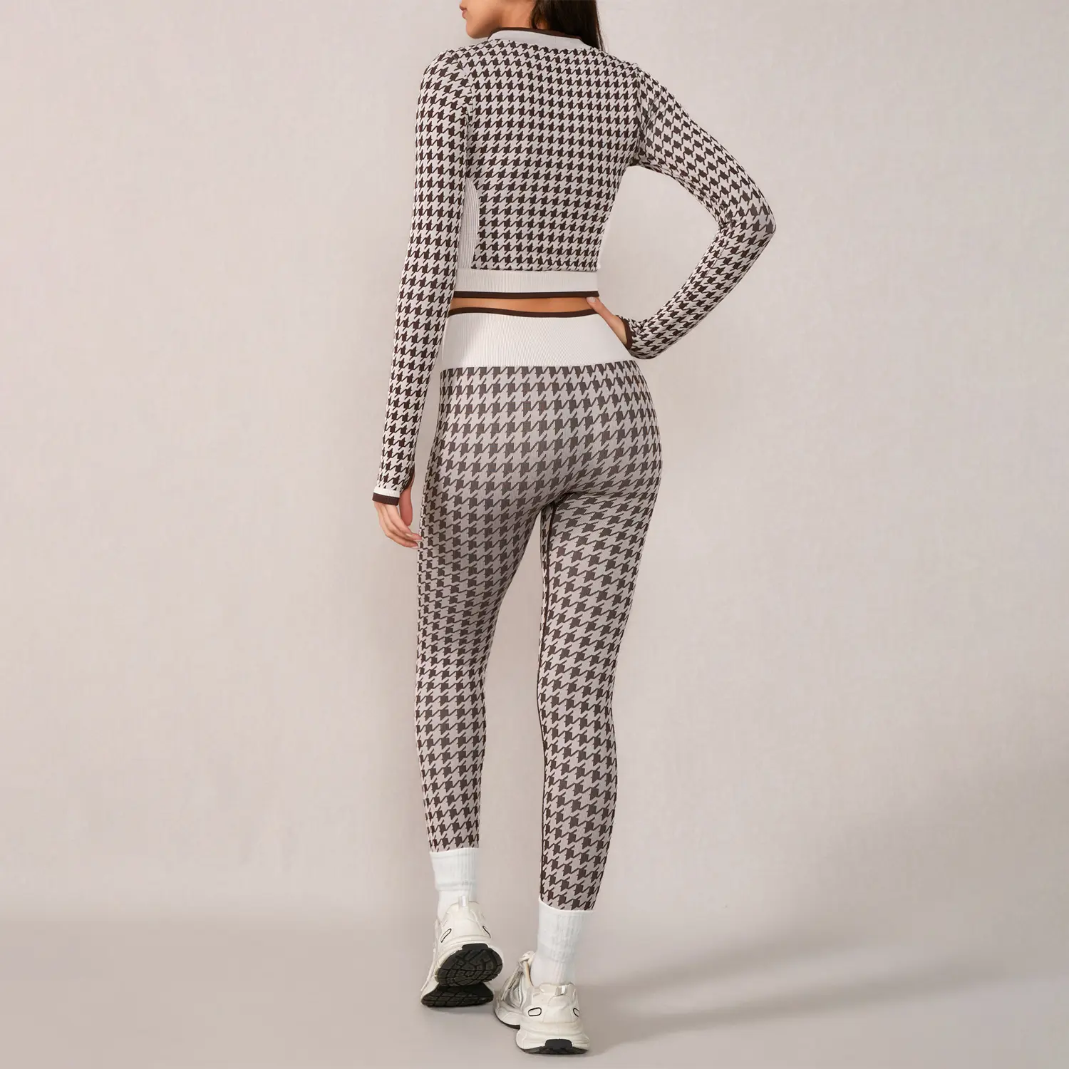 This set is suitable for various fitness activities.The cropped top and leggings are custom made for optimal performance.This stylish and functional clothing lets you focus on your goals.Experience the difference with NcmRyu Fashion Dog Tooth Yoga Set