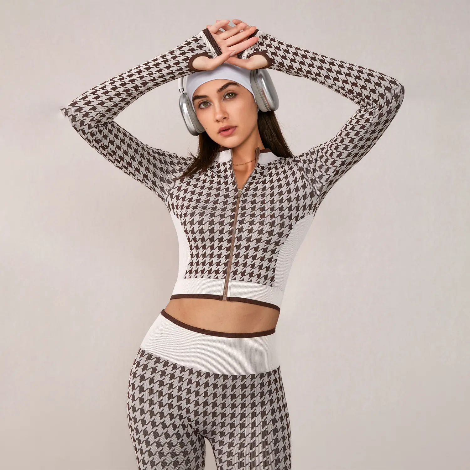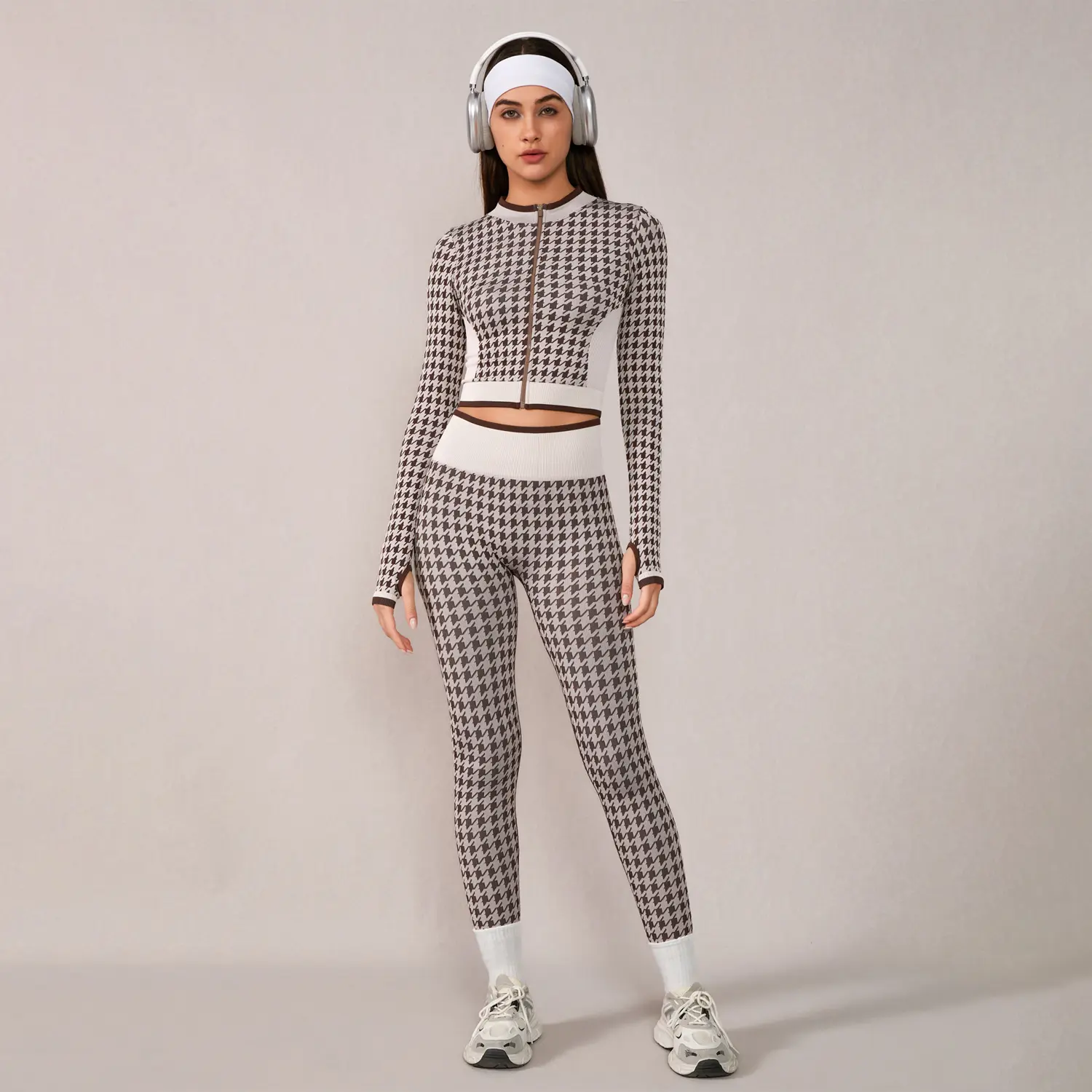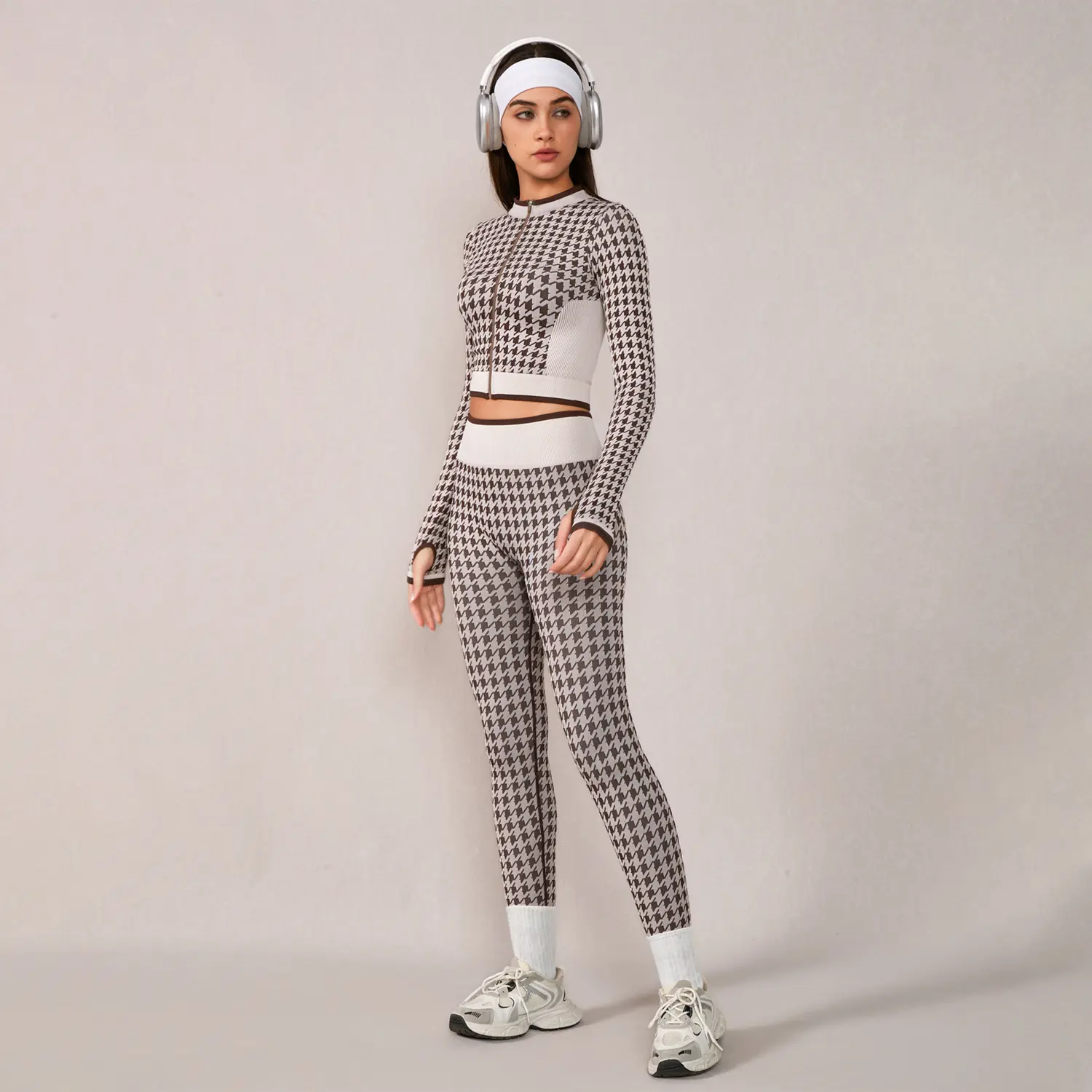 Omg this leggings and jacket set is so dang good! Look at this print! It looks high end😍 #leggingsset #houndstooth #yogaset #tummycontrolleggings #tiktokshopblackfriday