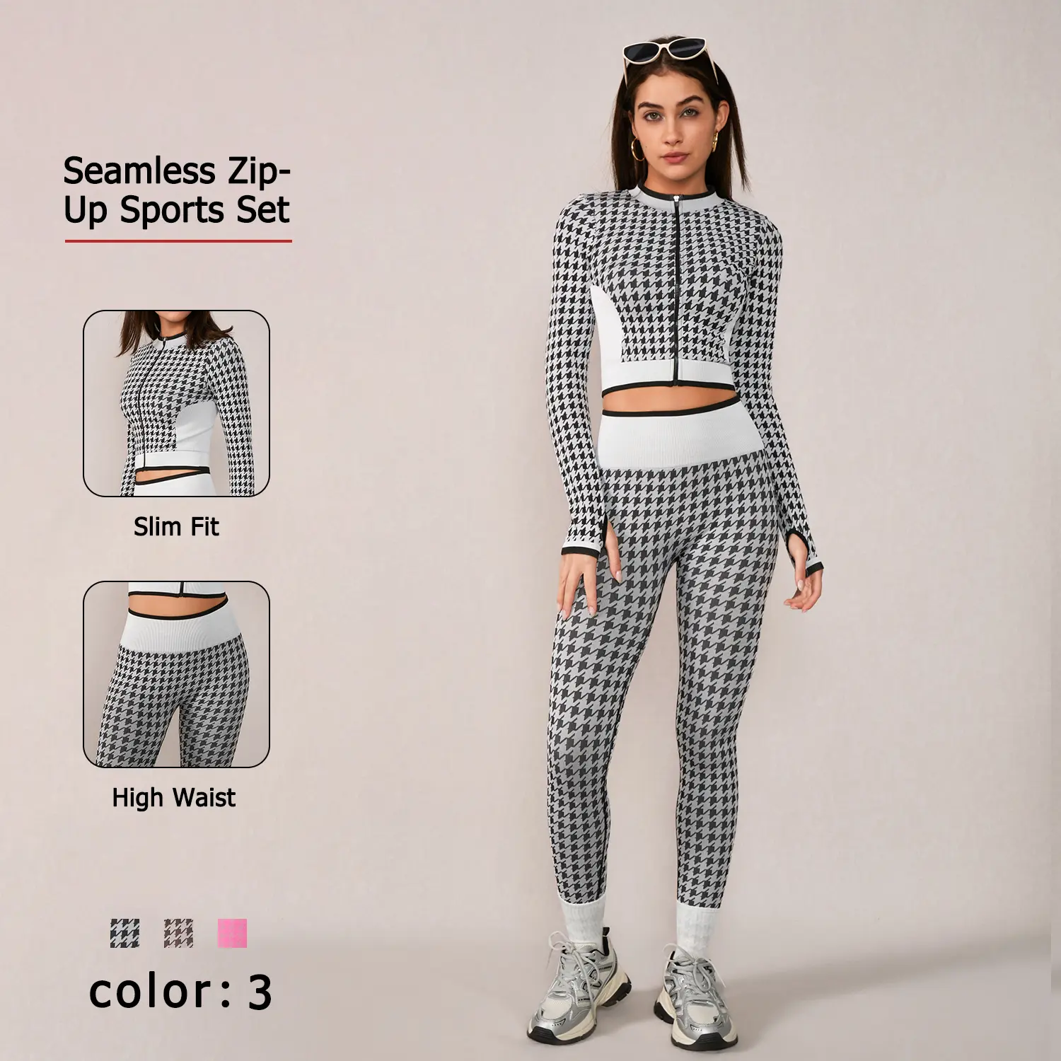 Upgrade your workout wardrobeWith NcmRyu Fashion Dog Tooth Yoga Set.This women's fitted crop top and high-waisted leggings set is perfect for workout training.The tooth pattern adds a stylish touch to your sports apparel.Ideal tummy control and high stretch, it ensures comfort during intense workouts.