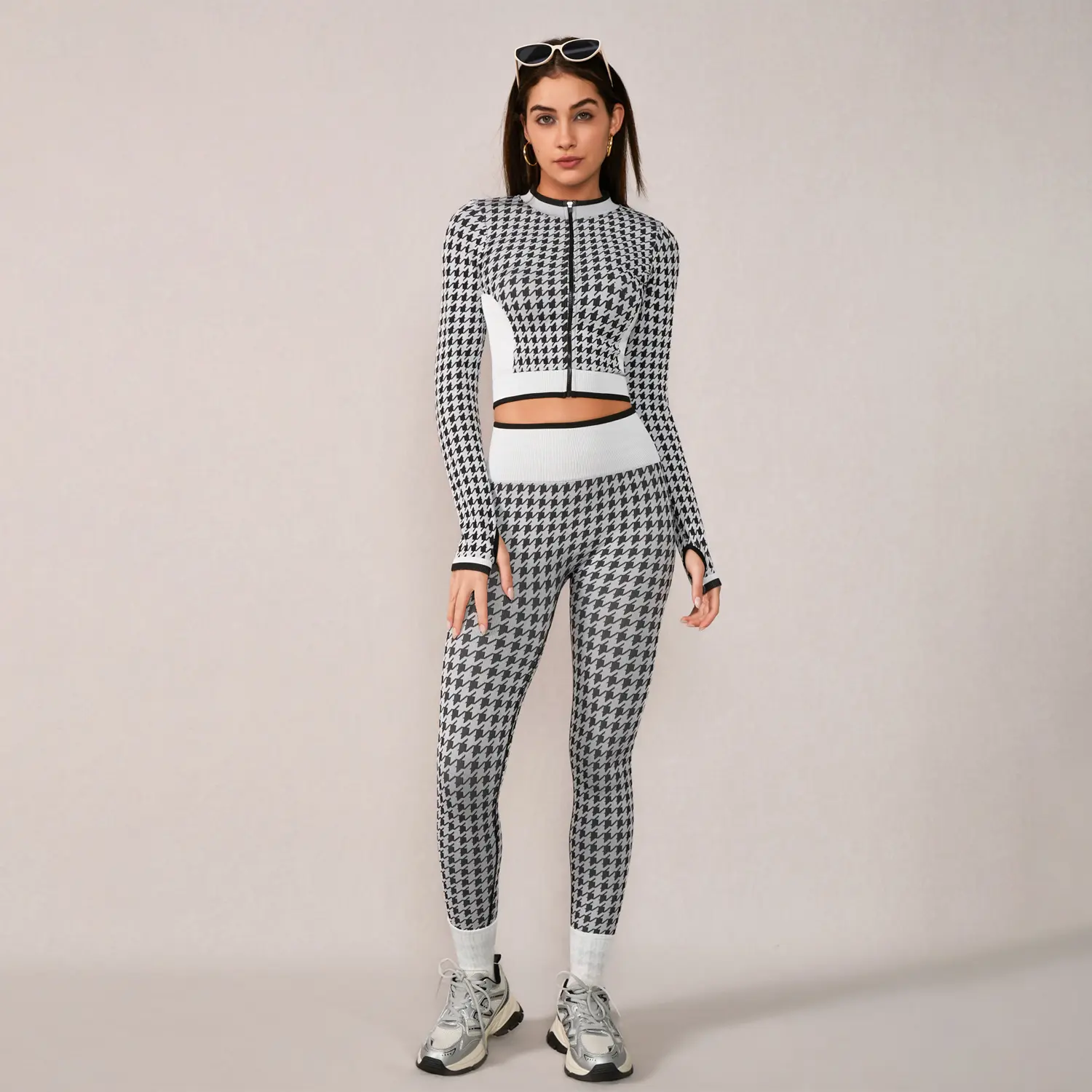 NcmRyu Fashion Dog Tooth Yoga Set
