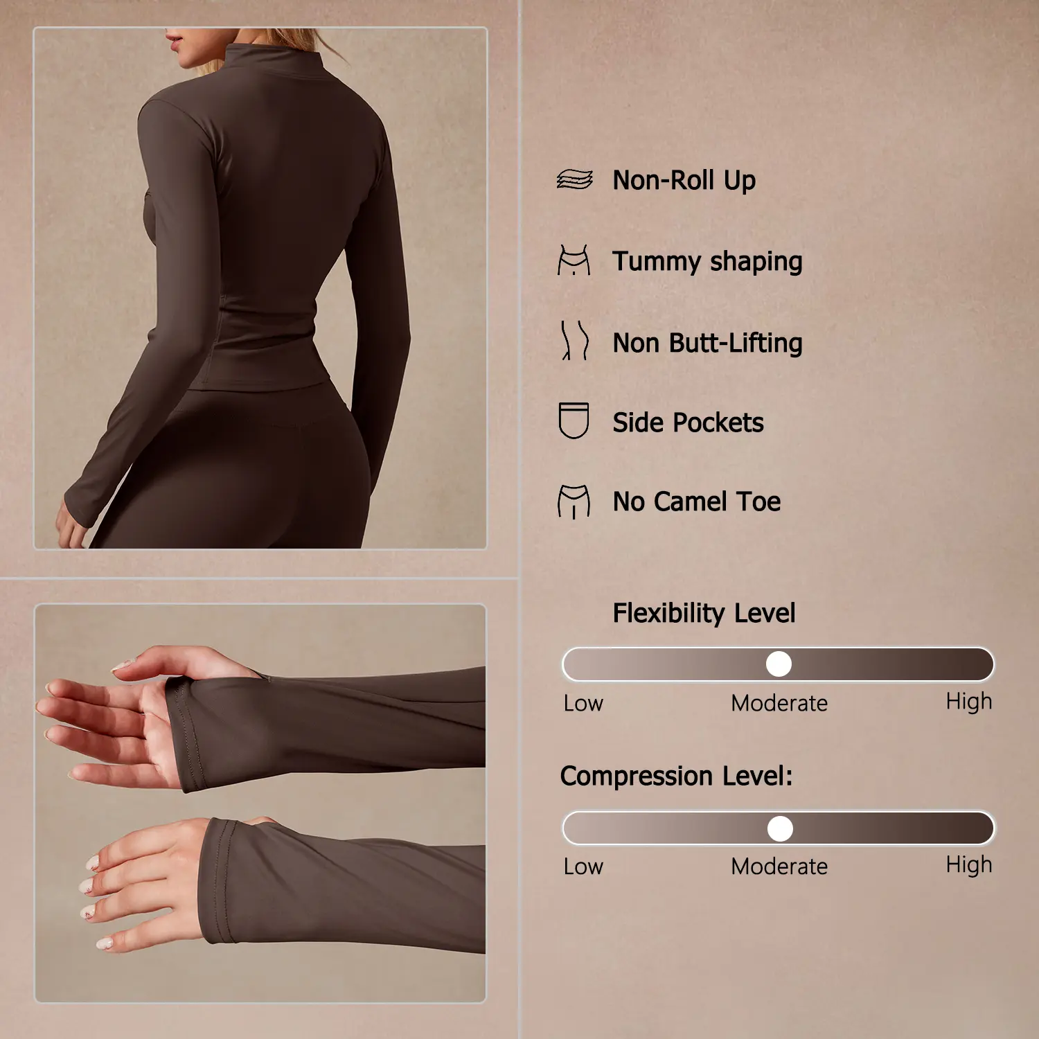 This jacket is ideal for yoga, pilates, or daily wear. The thumb holes and full zip closure add versatility, while the quick-dry fabric ensures you stay cool. Available in 13+ colors. 🌈