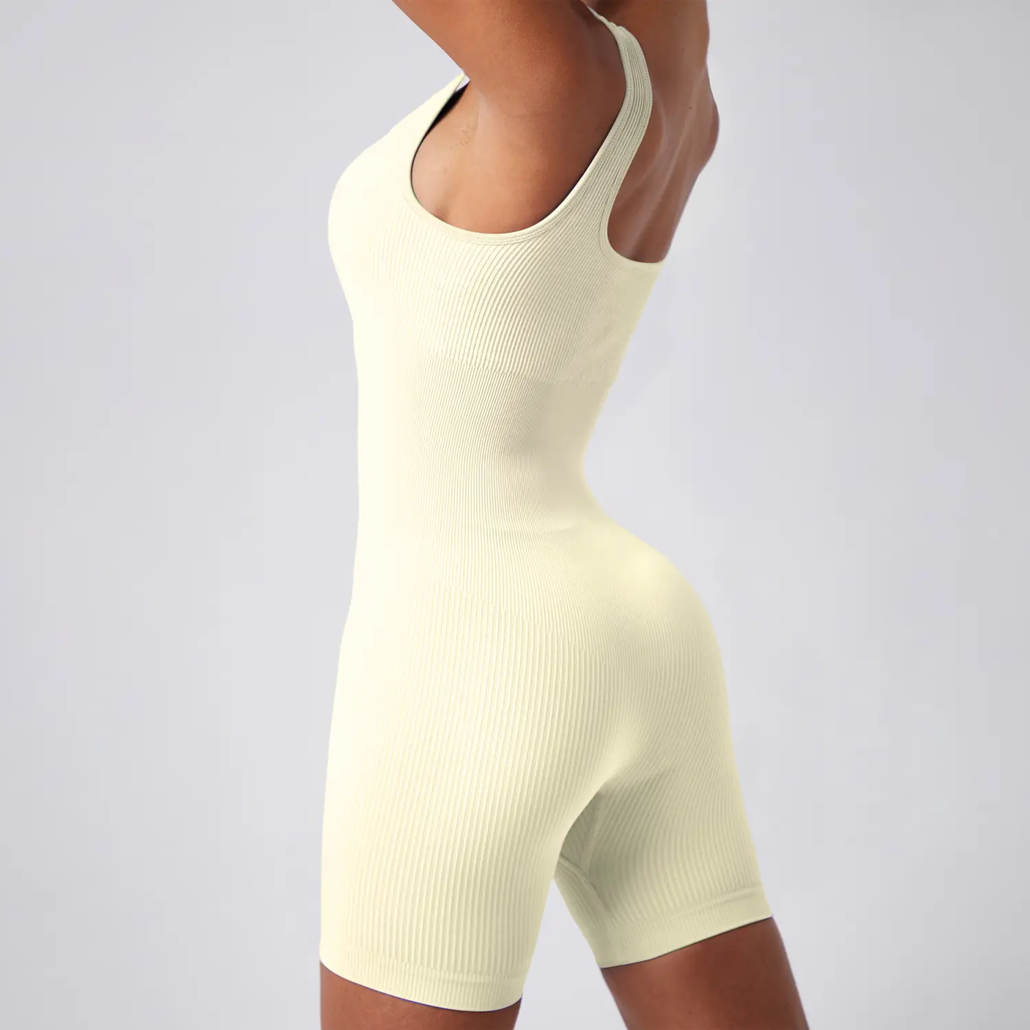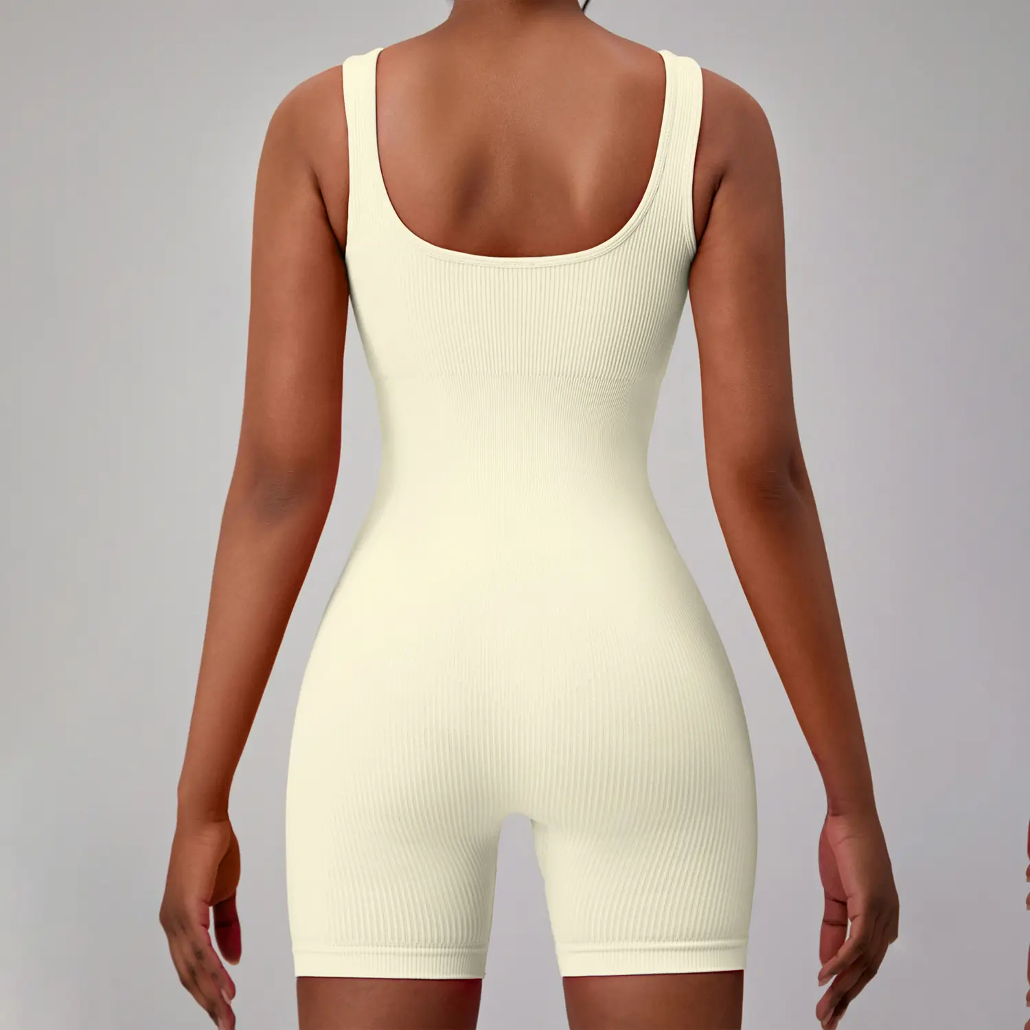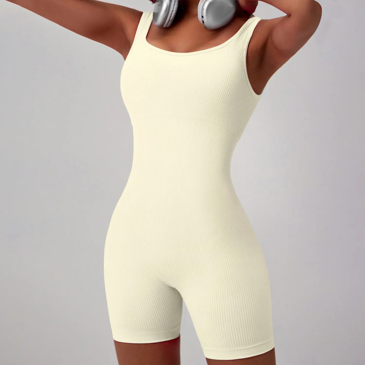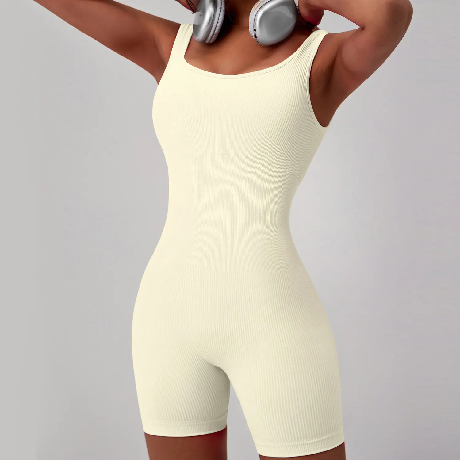 5. NcmRyu Women's U-Neck Ribbed One-Piece Romper - Slim Sculpting Stretchy Stay-Put Comfort Flattering Fit for Yoga Gym Casual Activewear