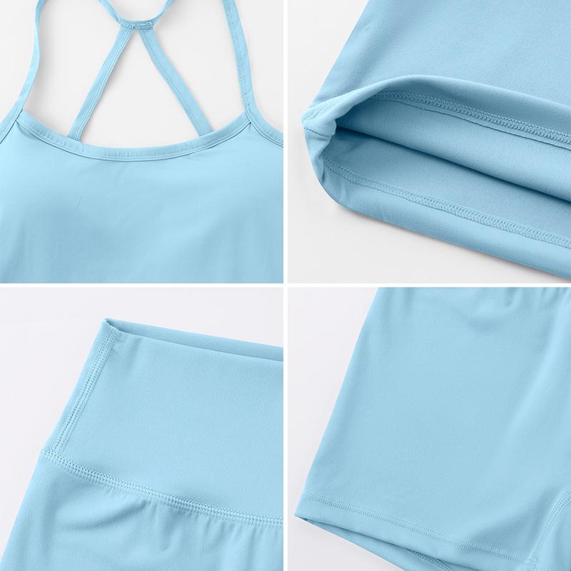 NcmRyu Women's Strappy Back Sports Vest & Shorts Set