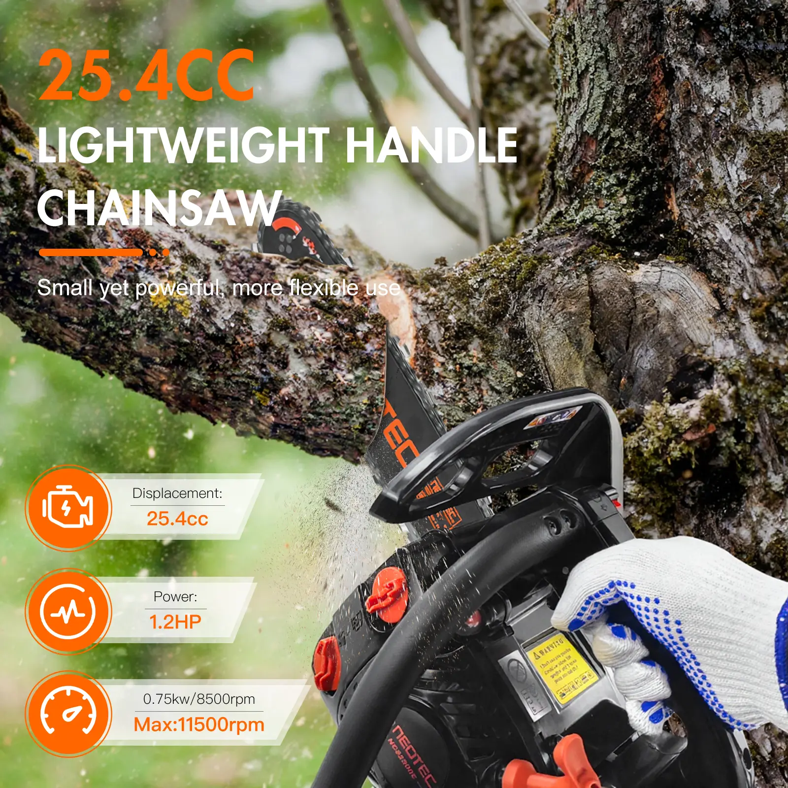 This little chainsaw is awesome. It's very light. Starts easy and cuts trees like butter