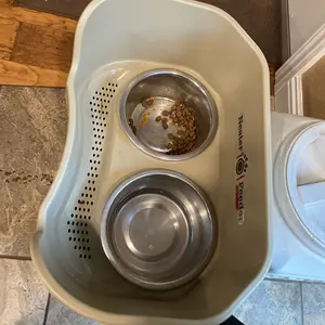 I had been looking for a good large raised feeder for my Great Dane and this one is the best! She makes a mess while drinking and this feeder is perfect for that. The walls on the sides and the water catcher underneath is great. Definitely worth the price.