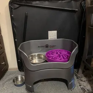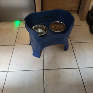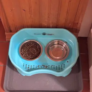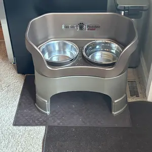 The Neater Feeder is perfect for my dog! Heâs over 15 years old, and has vestibular disease, so heâs not very steady on his feet. He was constantly knocking into the previous stand we had, and water was always all over the floor. Not only does this keep his food and water contained, it also has an added benefit. Because the sides are higher, it actually helps keep him steady while he eats, which was a great extra perk!
