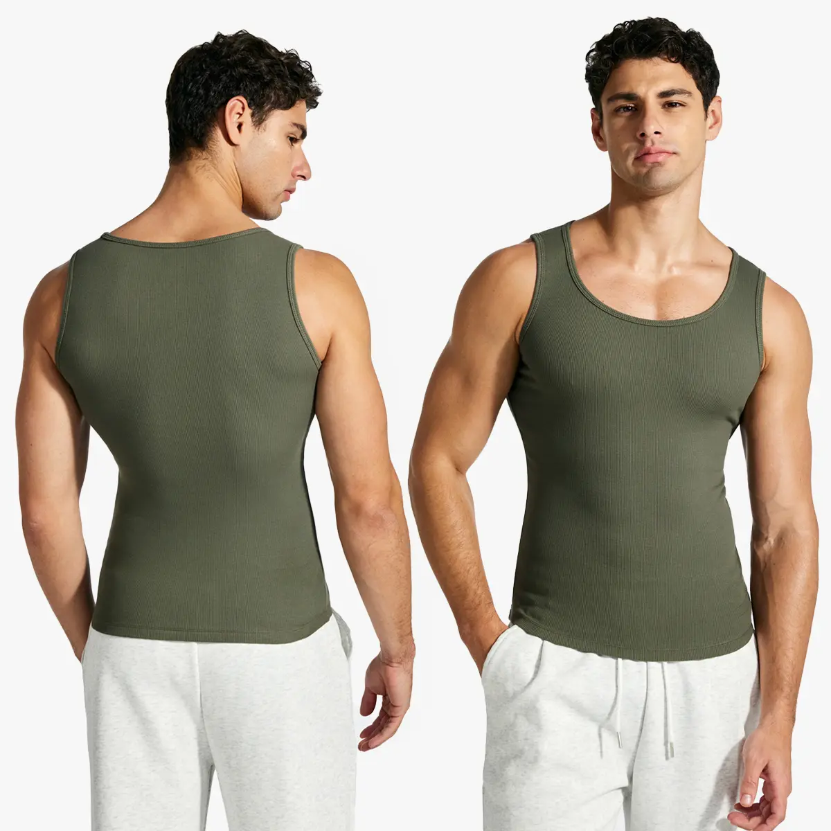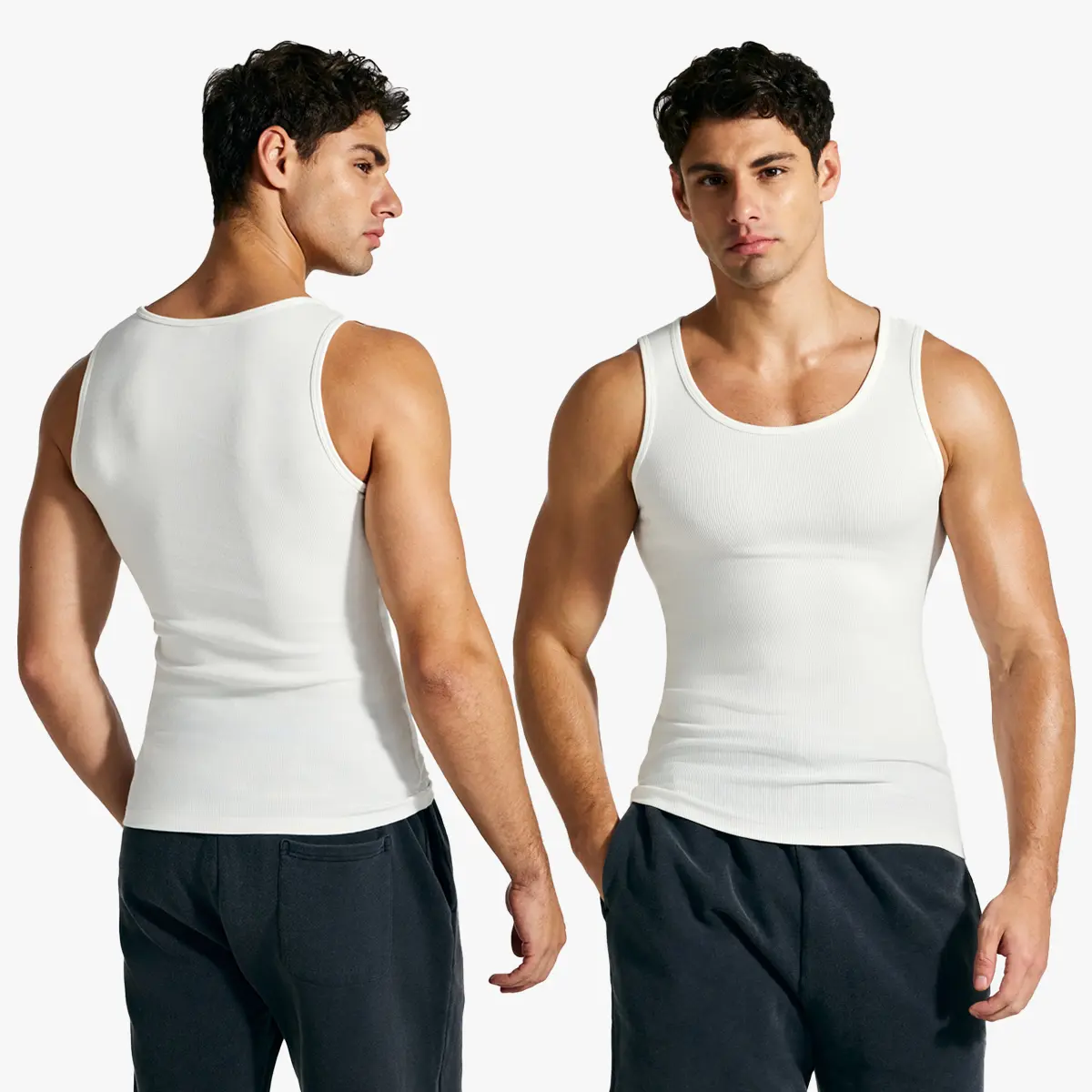 Men’s ribbed crew neck tank top made from 100% cotton for breathable comfort. Slim-fit athletic design perfect for workouts, layering, or everyday casual style. #MensFashion #TankTop #GymWear #CottonComfort #MinimalStyle 💪