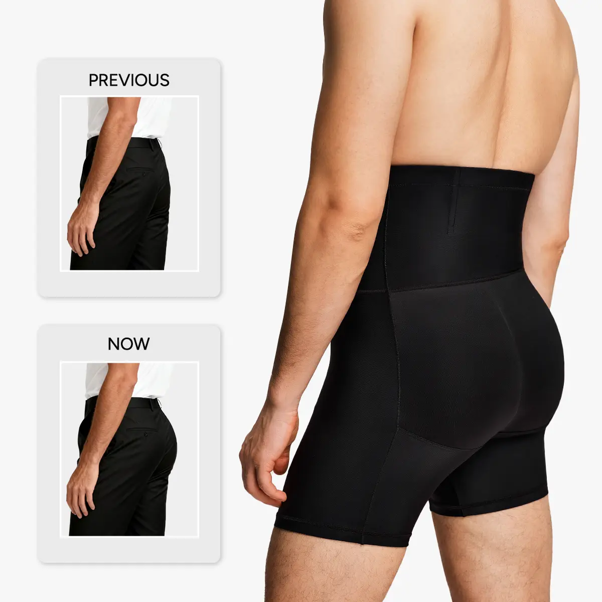 Nebility Men’s 3D Butt Lift High-Waist Shapewear Boxer Briefs, with Built-In One-Piece Fixed Hip Pad, High Waist Seamless Compression Underwear, Breathable Stretch Fabric for Tummy Control, Daily Support & Moisture-Wicking