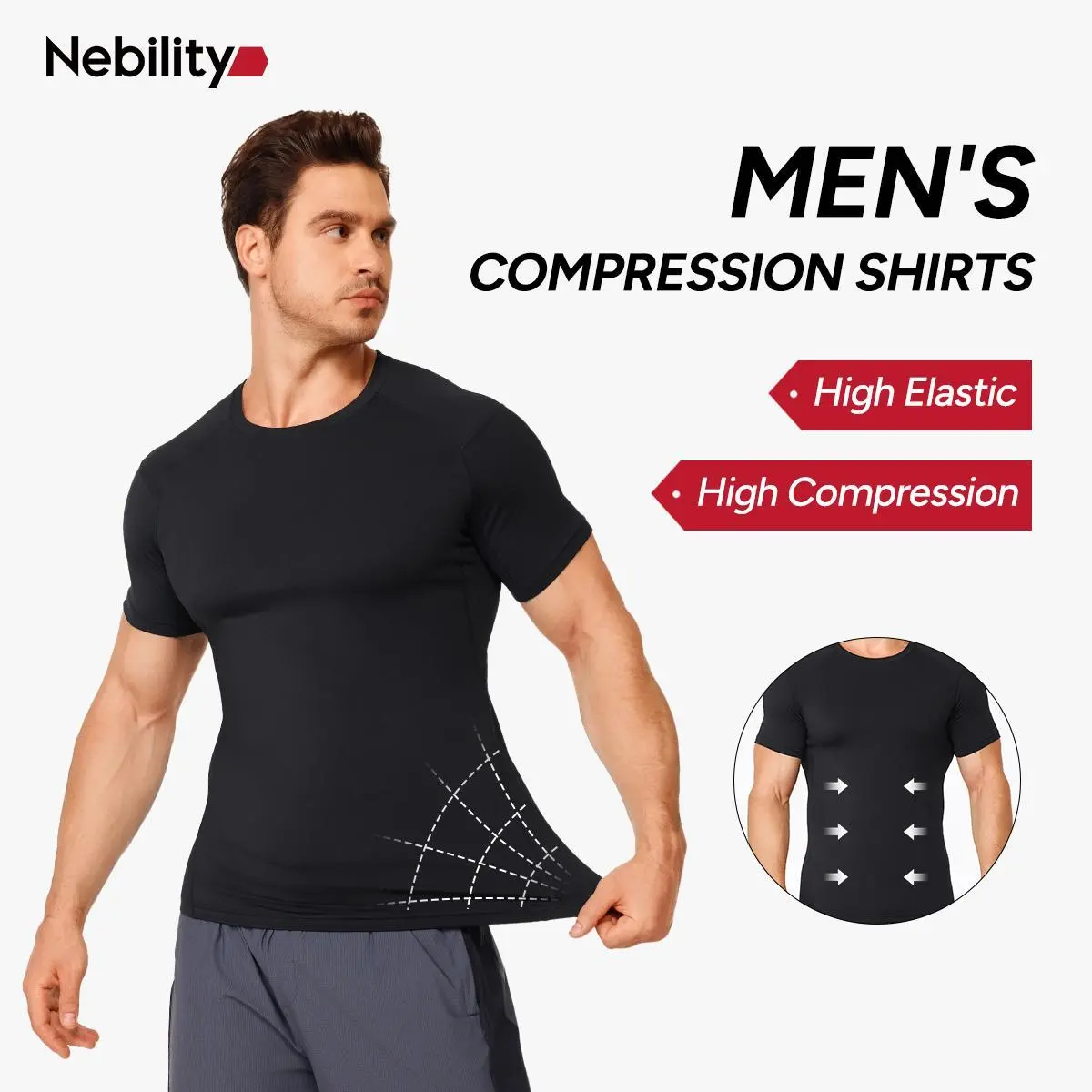 5. 【LIVE】Nebility Men's Athletic Compression Short Sleeves Shirts High Elastic & Compression Wicking Workout Shirts for Enhanced Performance Summer Active Wear