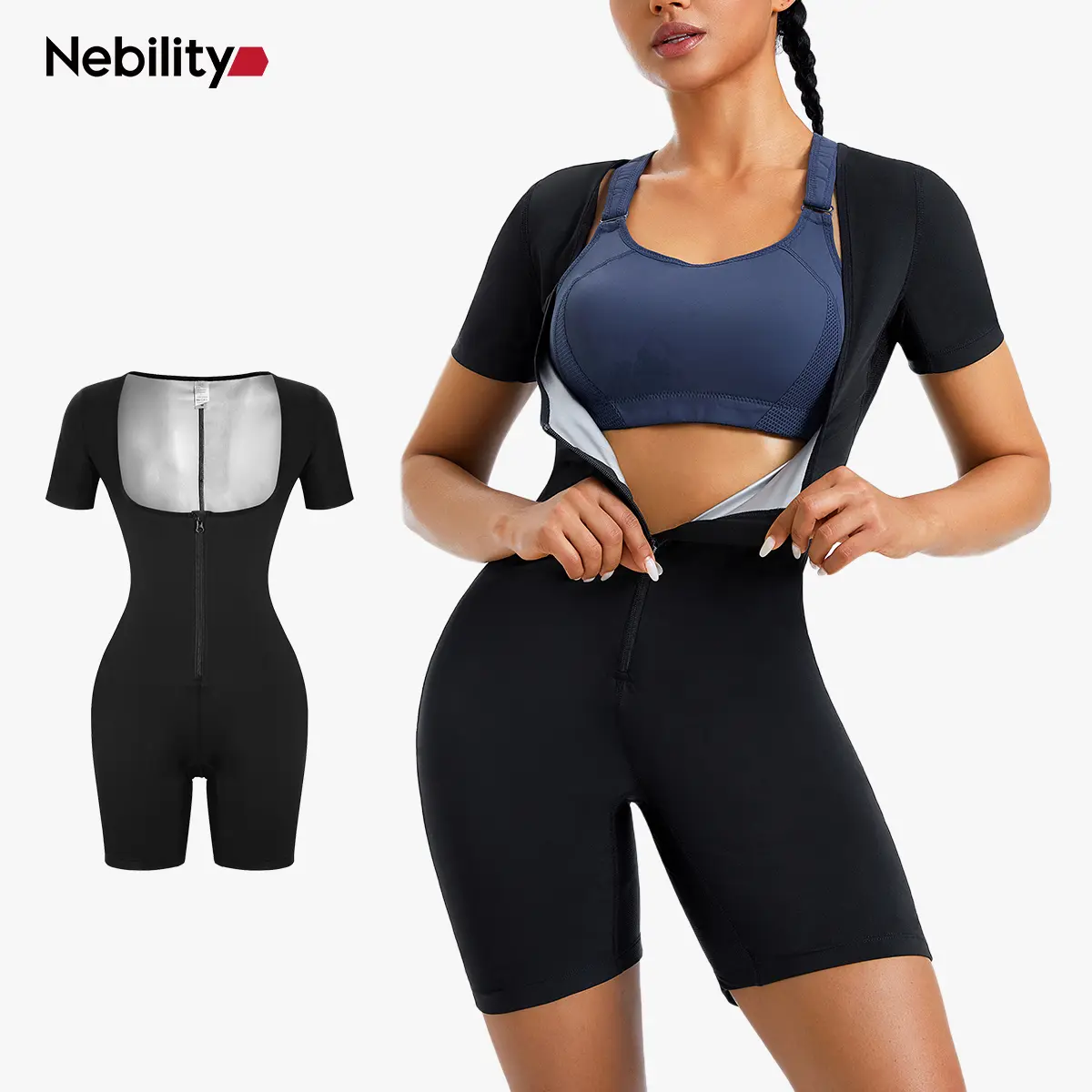 Had 2 latches on the inside to clasp. Zips from stomach to chin. Will sweat for sure. Reduced my waist sizes in 90 days. Helps shape your body.