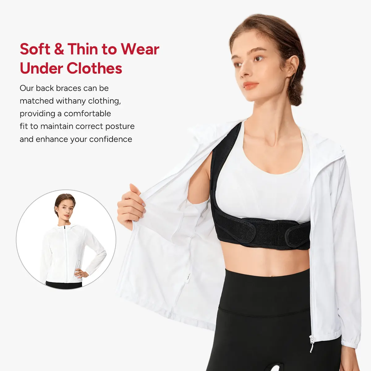 Fix your posture in seconds. No more slouching, no more back pain. This brace keeps you aligned and looking confident.