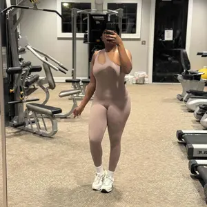 This jumpsuit is honestly a 10/10 its very comfortable stretchy material and really cute! Perfect for a cute gym outfit!