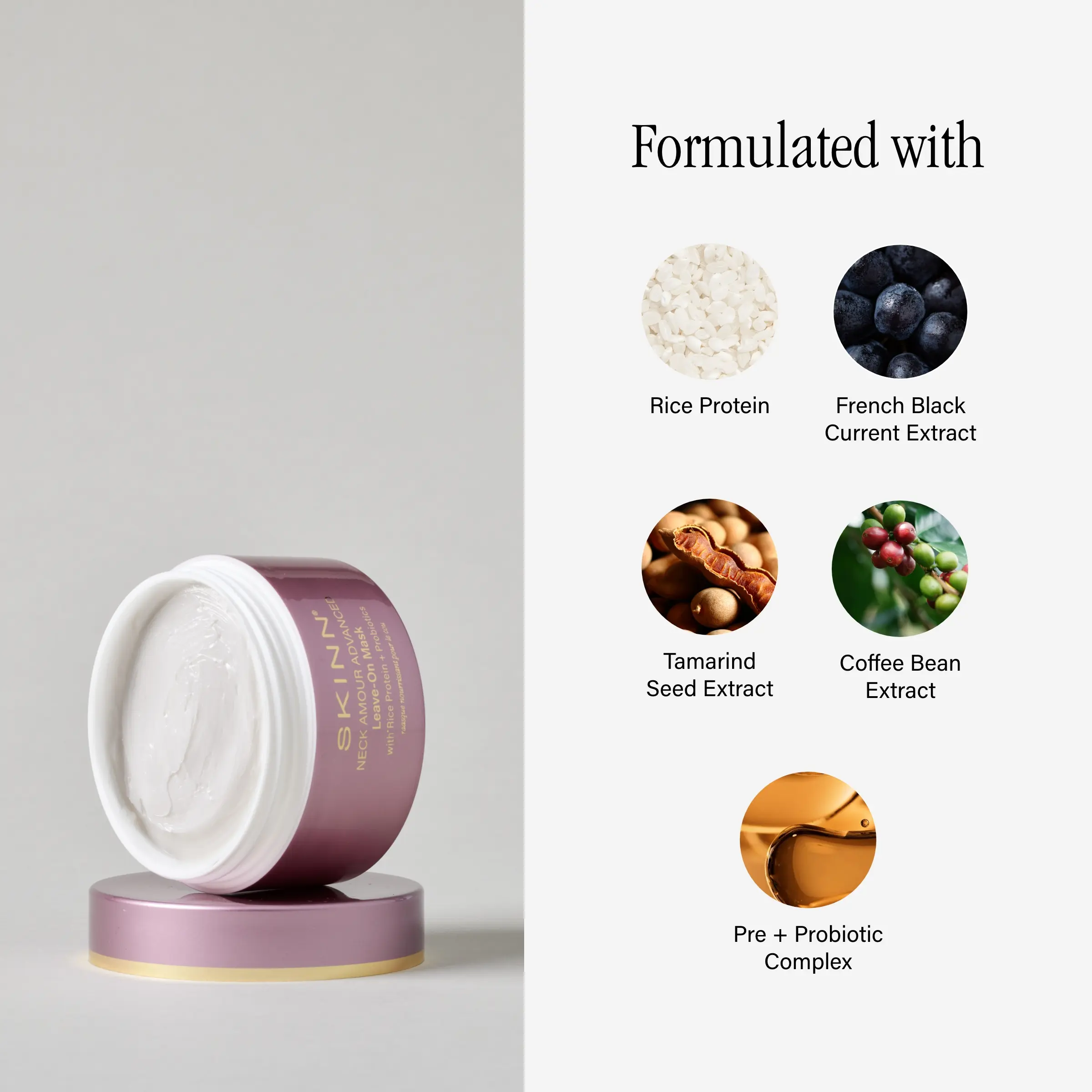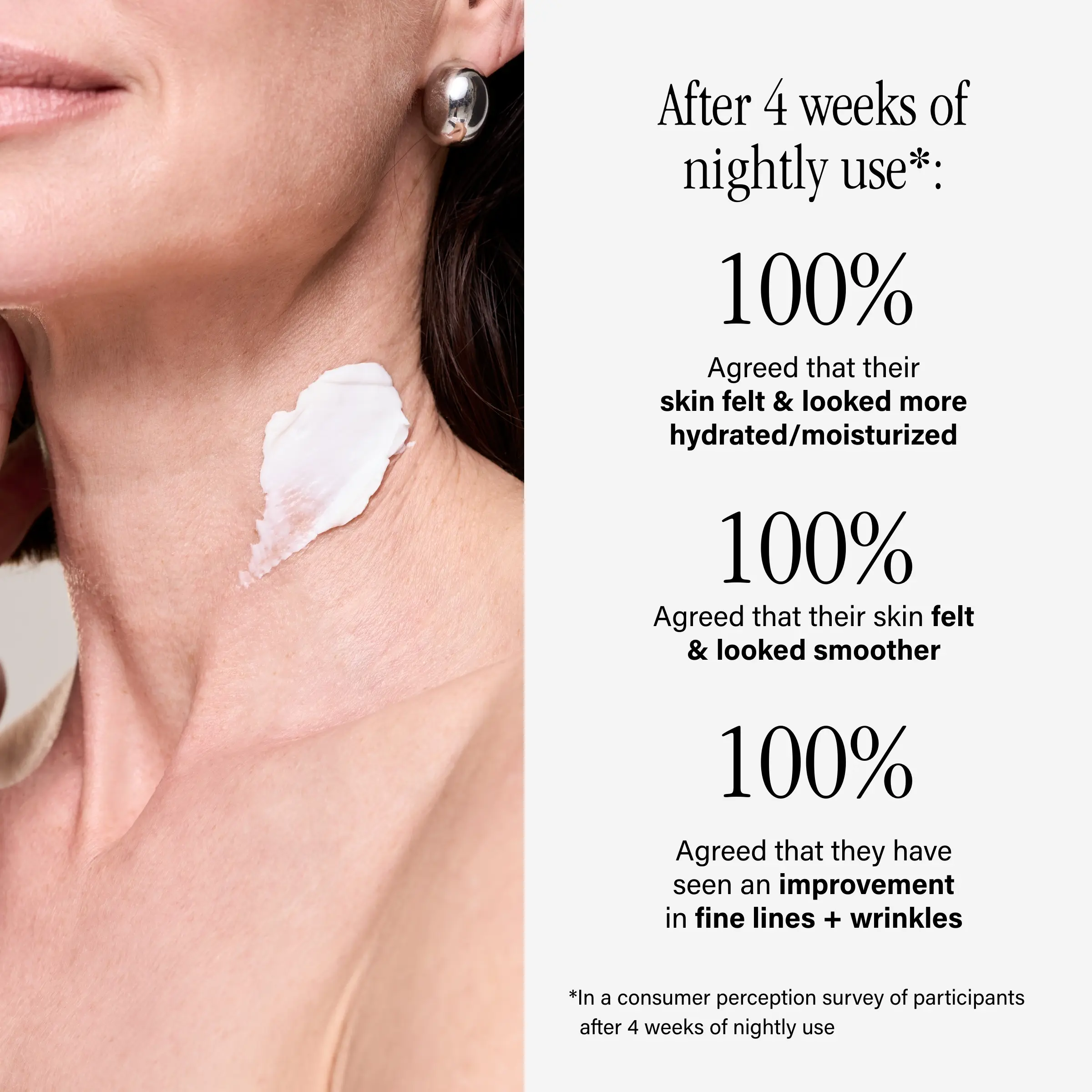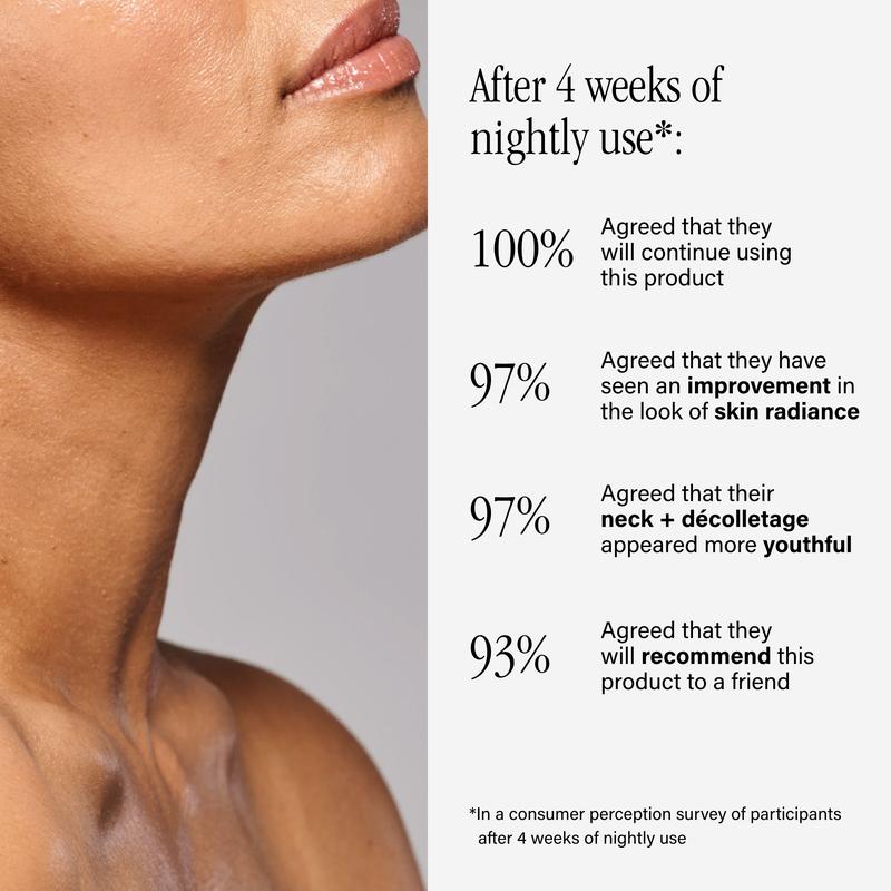 This treatment-strength, leave-on cream mask is designed to deeply hydrate, firm, and refine the delicate skin on your neck, décolleté, and jawline. Whether you use it as part of your nighttime ritual or as a skin-smoothing boost during the day, it delivers powerful results without the need to rinse.