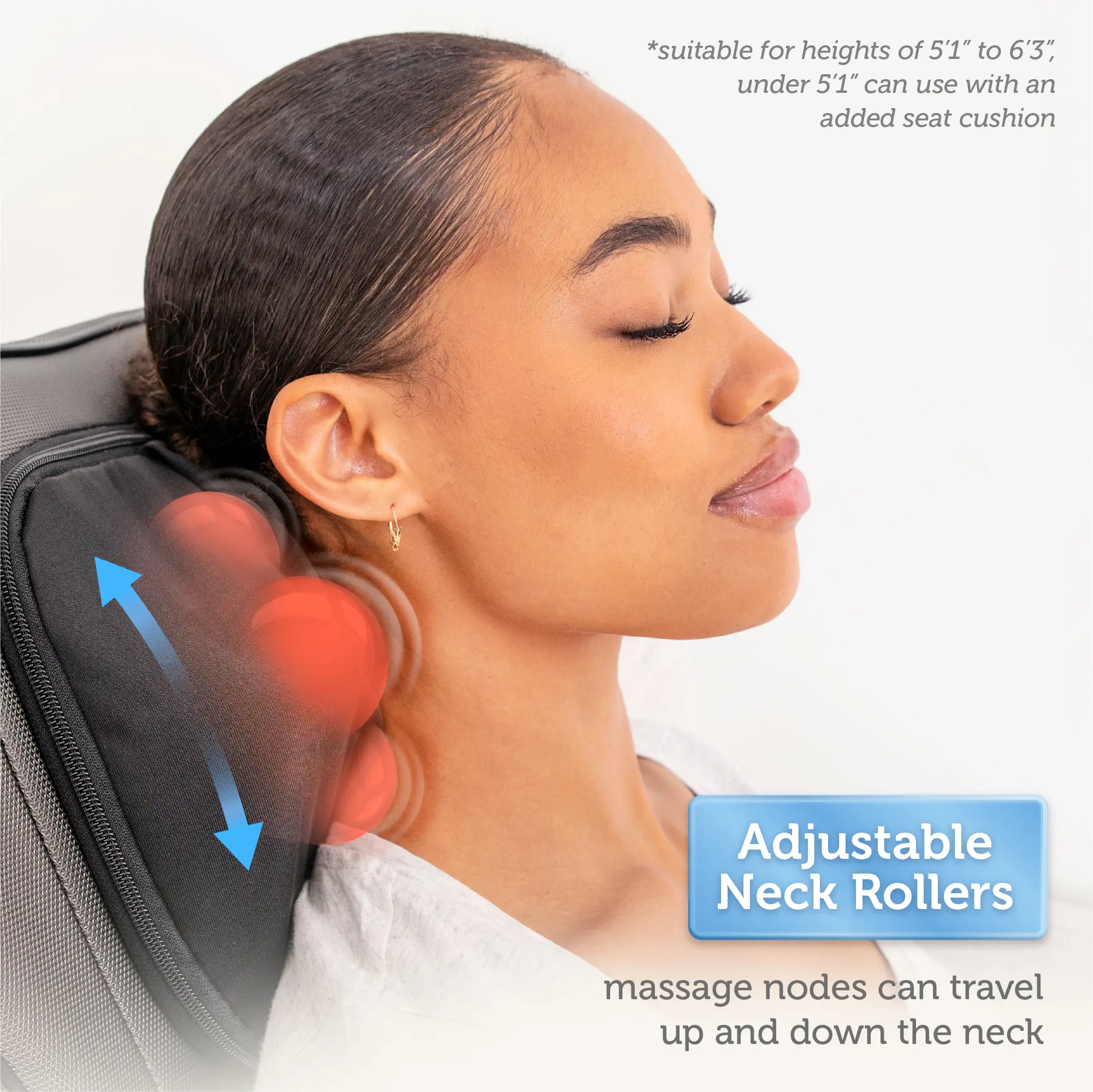 ·Adjustable Rolling & Spot Massage - The chair massager features soft rolling massage along the back spine combats across the whole back, and the width between two massage heads can be adjusted to fit the body. SPOT massage function allows you to concentrate massage on one area for pin-point relaxation. Also you can choose Full back, Upper back or Lower back to massage the target area as desired.