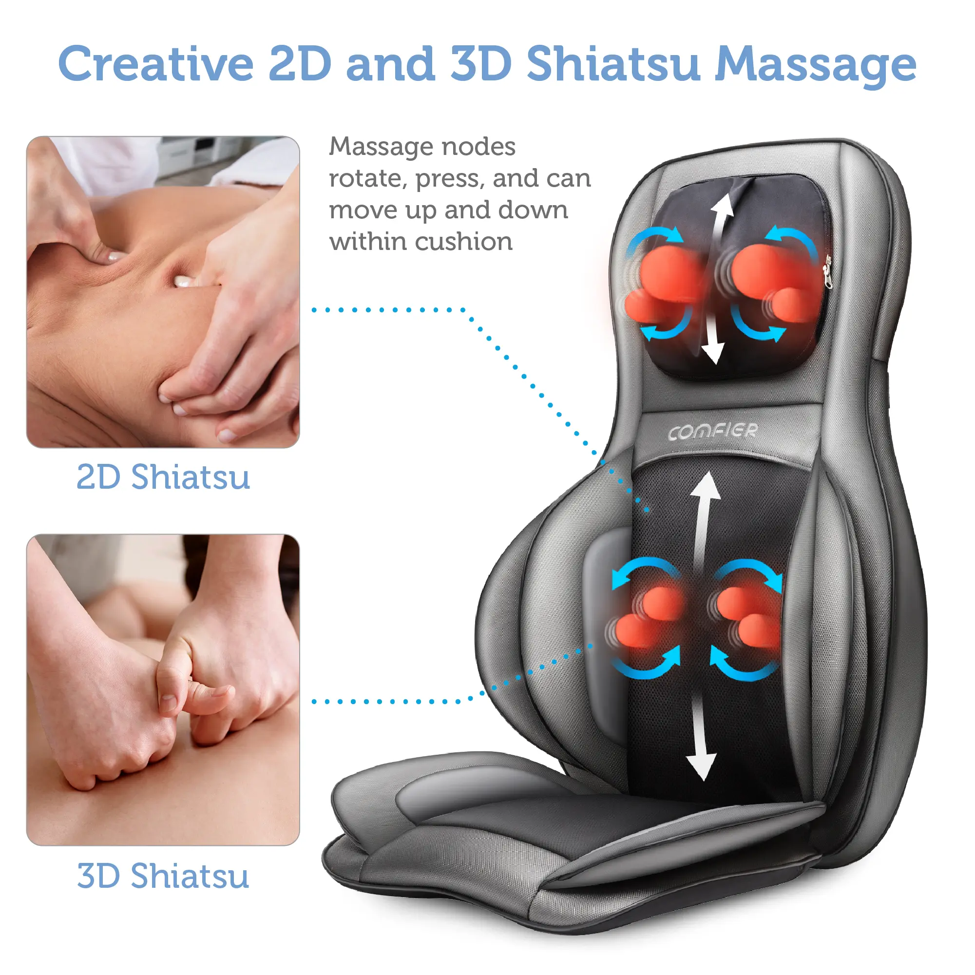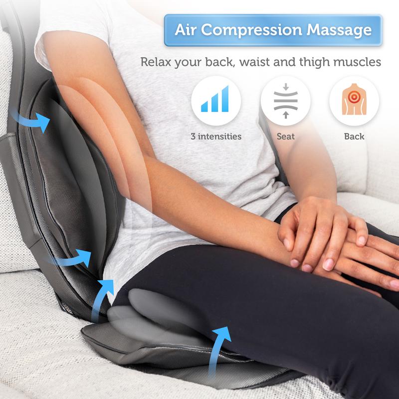·Optional Heat & Adjustable Compression Massage - The full back massager has a heating pad that delivers gentle warmth to the back. ADJUSTABLE COMPRESSION-massage on waist & hips that you can choose. Adjustable 3 intensity settings are available.