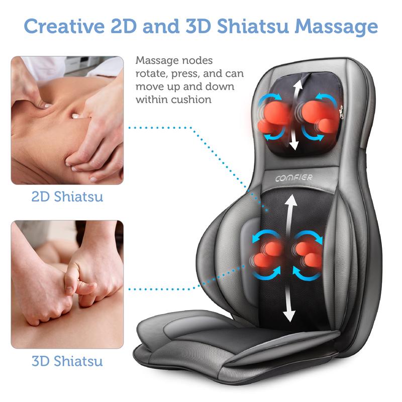 ·Creative 2D/3D Shiatsu Massage - The Shiastu Neck & Back Massager with Heat, it has 4 rotation nodes to provide deep kneading massages for neck. This massager incorporates our latest innovative technology, the massaging nodes move inward & outward motion to create 2D or 3D finger pressure shiatsu massage with double comfort for your back.