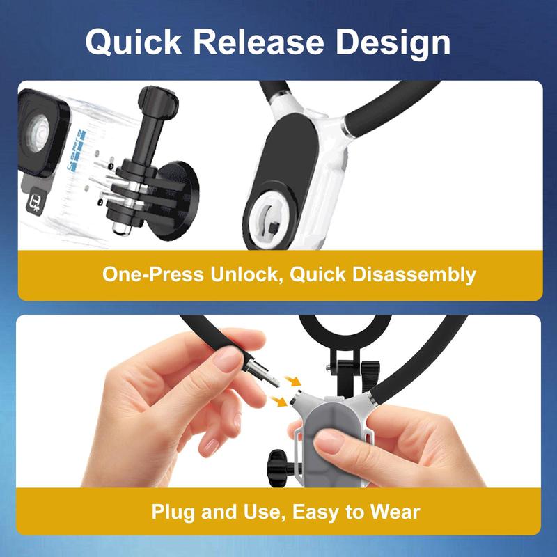 Ever try filming a vlog or video call while holding your phone? It’s tricky! This neck phone holder frees your hands so you can focus on creating. The soft, adjustable silicon neck band fits comfortably for hours, perfect for content creators or multitaskers. It clips onto your phone easily and fits popular brands like iPhone, Samsung, and Google Pixel. Whether you're hiking, cycling, or just chilling at home, this lightweight and foldable stand travels with you effortlessly. The magnetic mount is strong enough to hold phones up to 6.6 lbs securely, so no worries about slips. Inside the box, you get one adjustable neck mount phone holder with a soft neck band and quick-release clip. Ready to upgrade your hands-free game? Grab this handy phone holder and start capturing your world with ease!