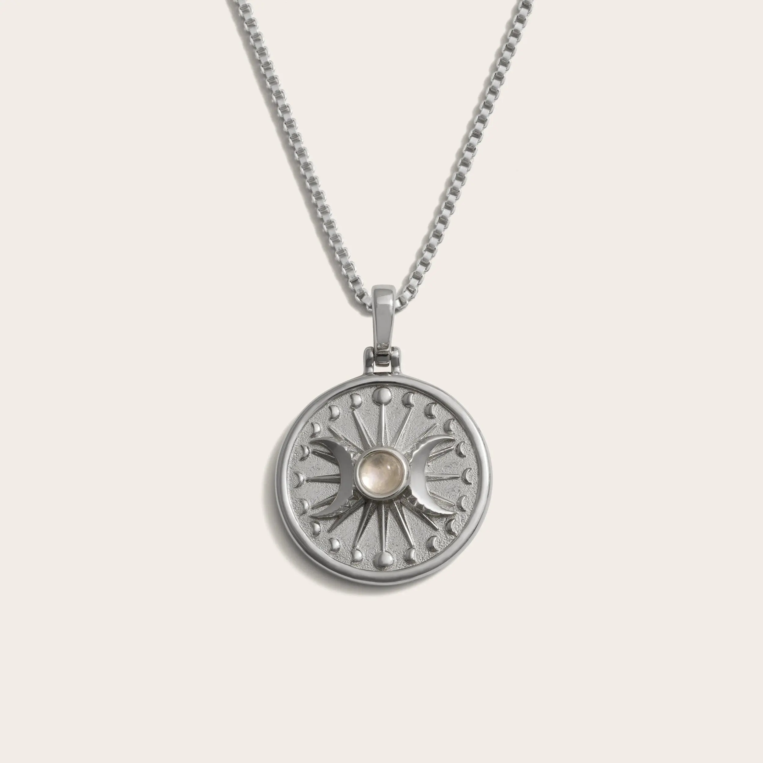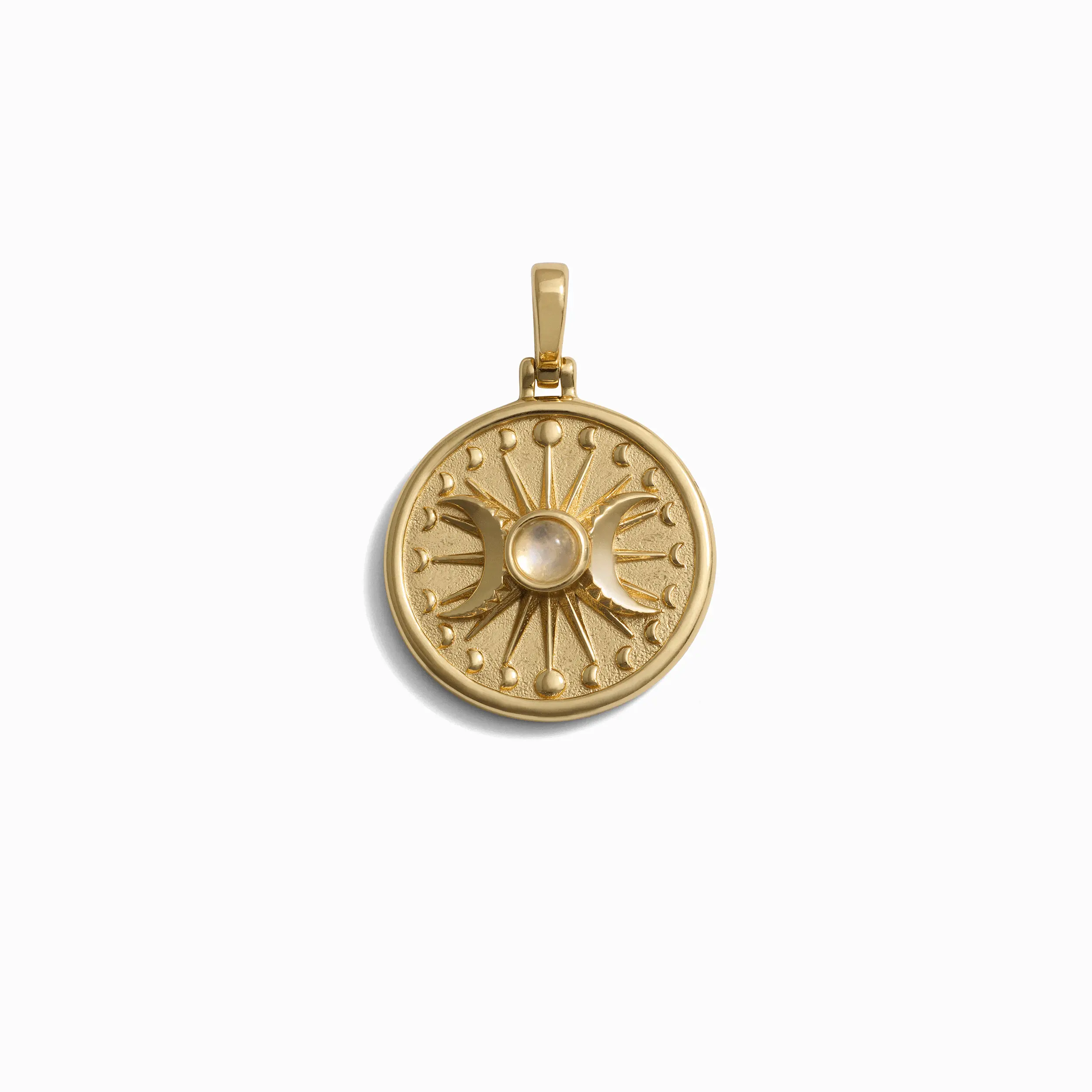 The Triple Moon, alongside the Goddesses it represents — Artemis, Selene, and Hecate — embodies the life stages of women, symbolizing their journey of growth and the multifaceted nature of femininity. This powerful symbol, featuring all phases of the moon cycle and adorned with a glowing moonstone, helps to enhance your connection to the divine feminine, empowering you to boldly move forward on your journey.
