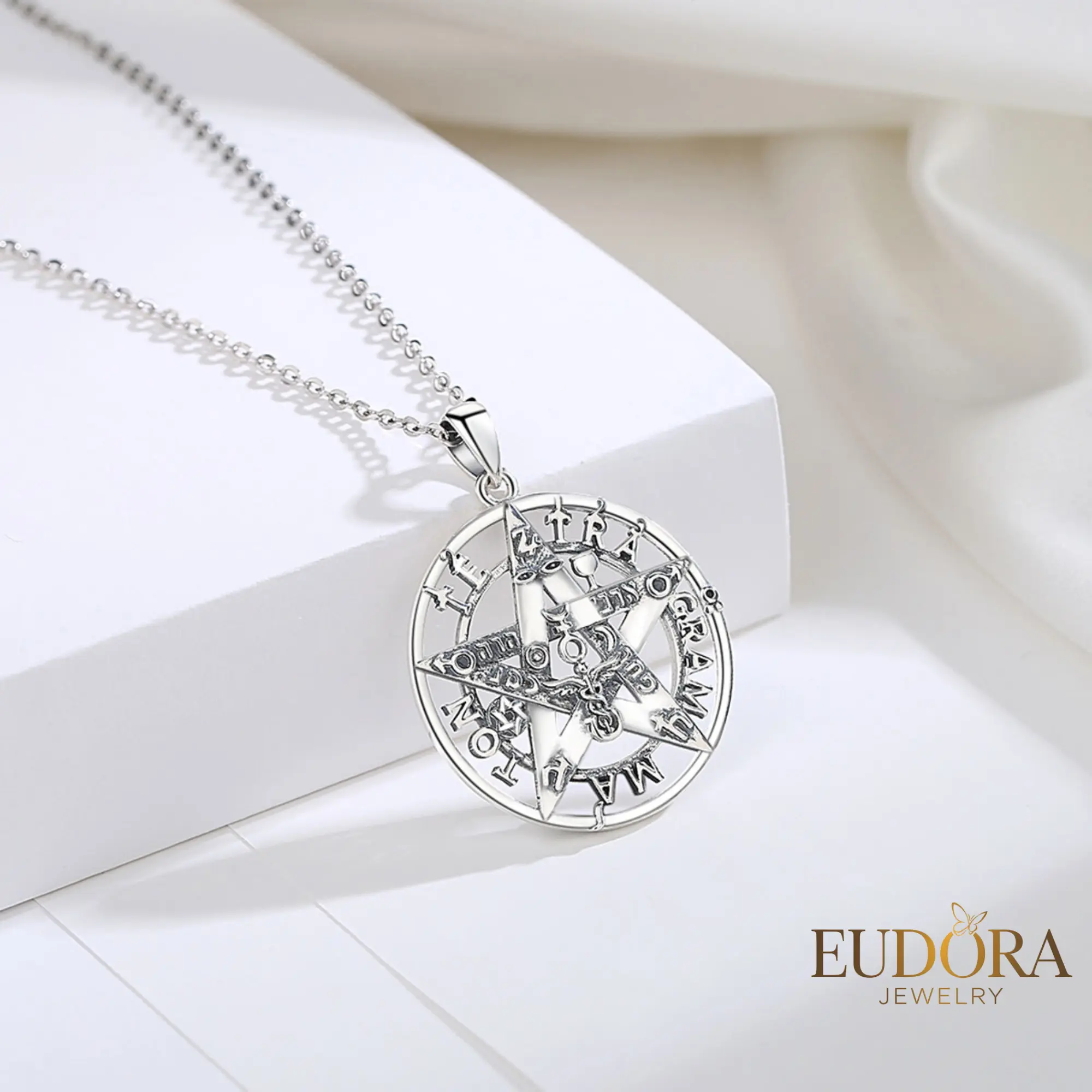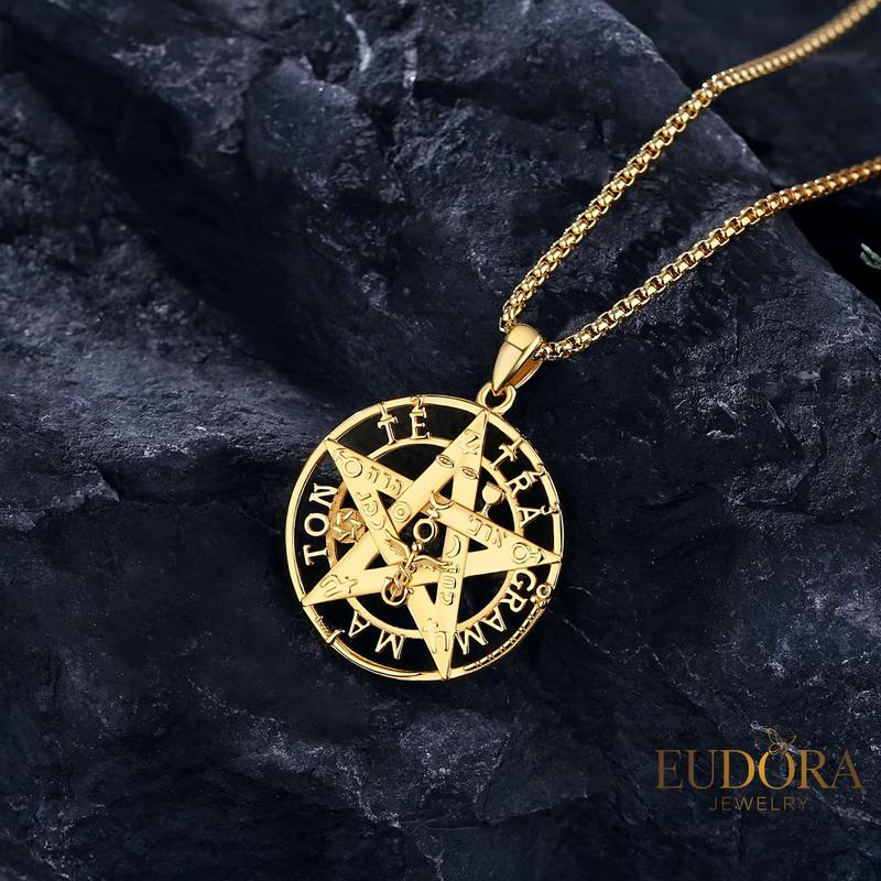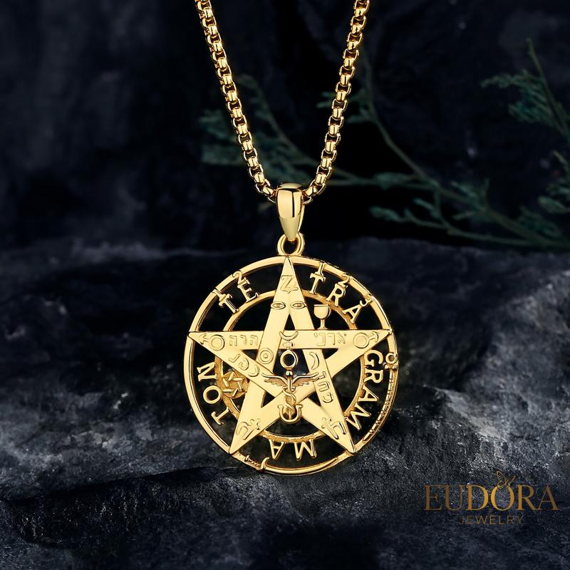 Powerful Tetragrammaton Symbolism: The Tetragrammaton pendant features the sacred four-letter name of God in Hebrew, YHWH, within a star-shaped pentagram, representing divine protection and spiritual strength.