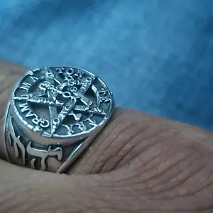The intricate design combines both ancient Hebrew script and mystical symbolism, making it a perfect piece for those seeking spiritual power, guidance, and protection.