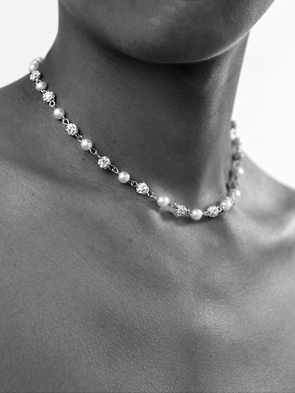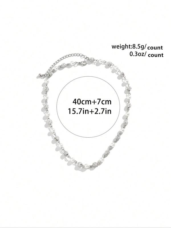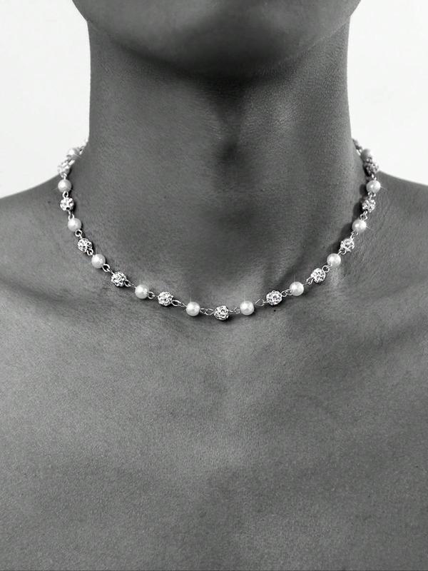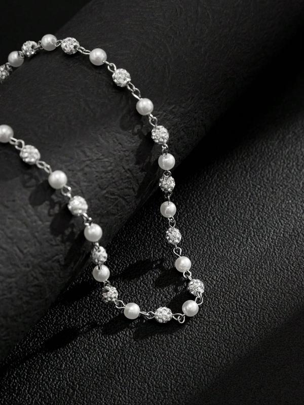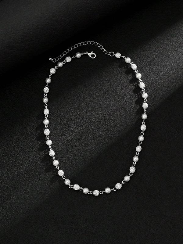 Faux Pearl & Rhinestone Decorated Necklace, Elegant Rhinestone Necklace, Punk Style Jewelry for Party, Daily Clothing Decor, Trendy All-match & Exquisite Jewelry for Birthday Gift