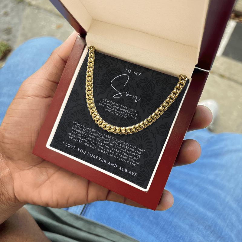 Give your Son the gift that symbolizes your never-ending love. Featuring an adjustable chain from 18" - 22", this is the perfect and unique gift for that special someone this holiday season.