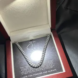 Your To My Son necklace is lovingly packaged in a complimentary soft touch box for easy gifting. Elevate your presentation by upgrading to the mahogany style luxury box, which features a brilliant LED spotlight.
