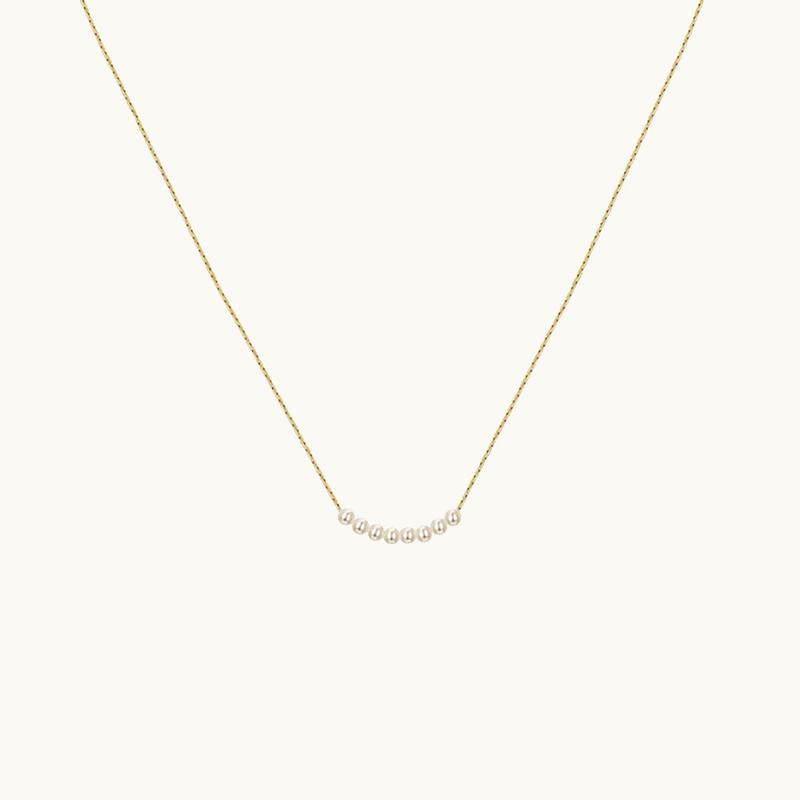 Your elegant necklace featuring mini freshwater beads. Very dainty, cute and light. It is a perfect piece for your layering game. Beautiful natural glow finish. Inspired by the seashore breeze and flowing water.