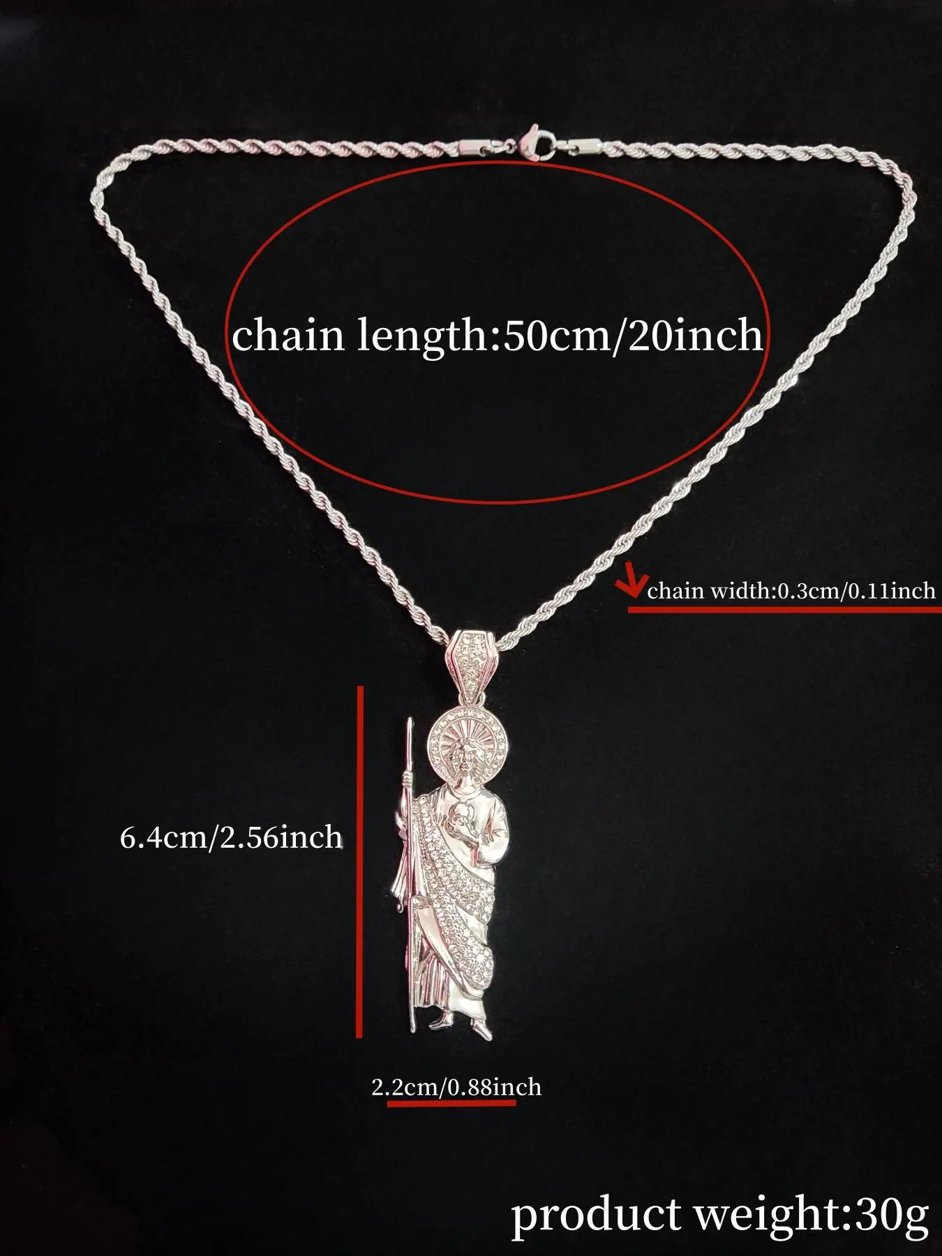 【Zinc Alloy Pendant】: Crafted from zinc alloy, the St. Jude-shaped pendant offers durability and a lustrous finish that catches the eye.