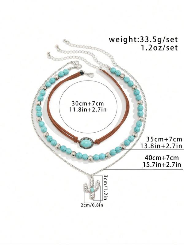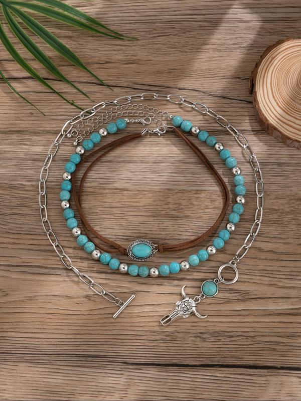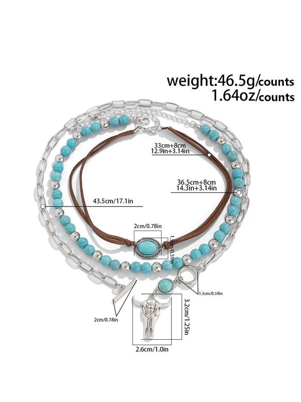 Vintage Cow Head Decor Beaded & Pendant Necklaces, Boho Style Turquoise Decor Necklace for Women & Girls, Party, Daily Clothing Decor, Birthday Gift, Daily Wear Necklace