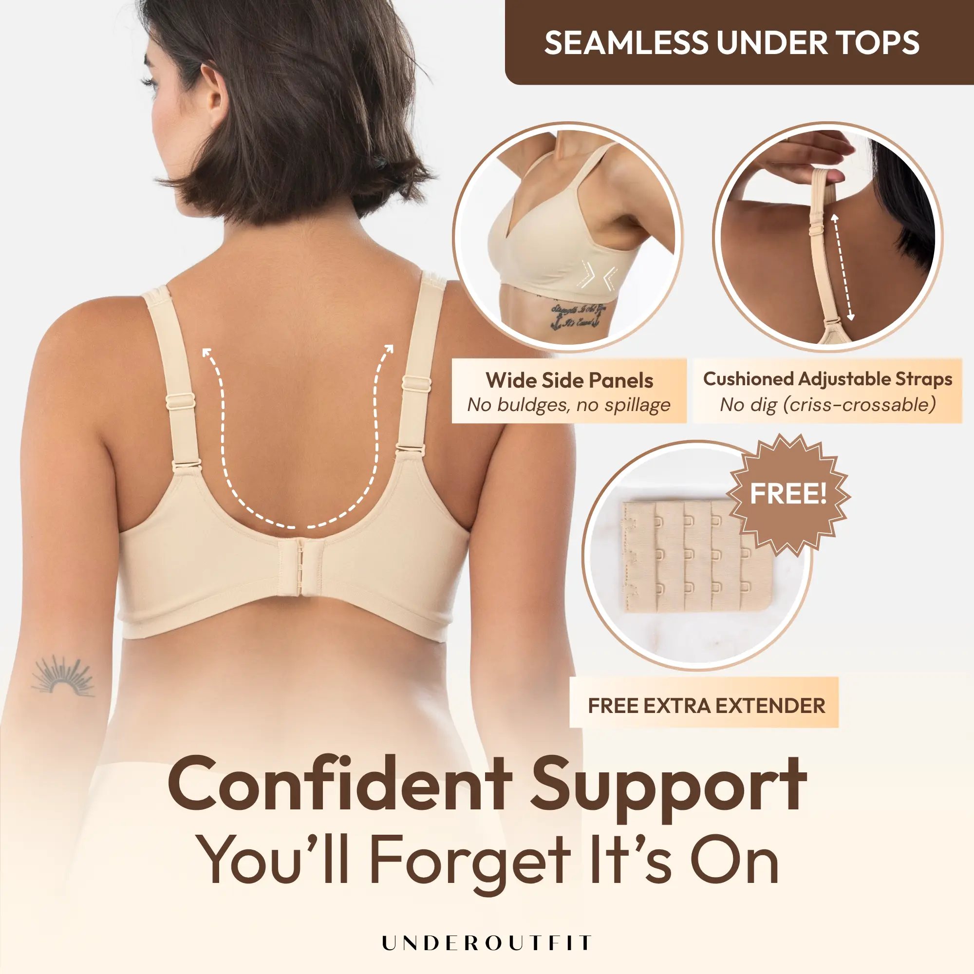 Fits perfectly and so comfortable! This is the third bra I've ordered from Underoutfit. I love them all!