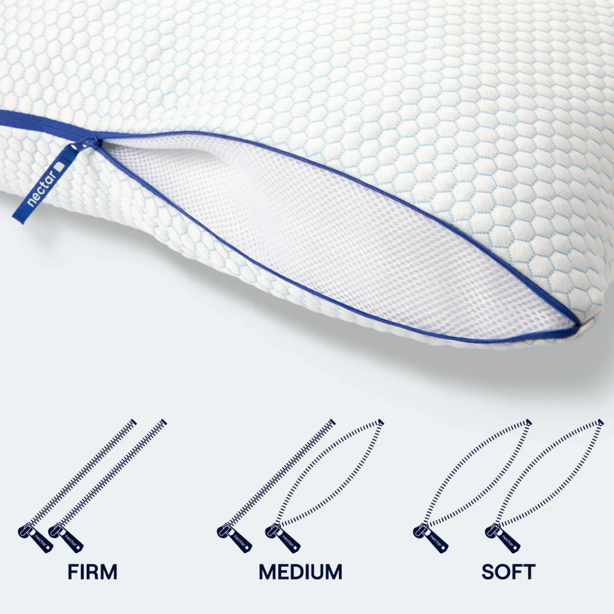 Reach peak comfort and help reduce neck pain with patented ComforZip technology and 3 levels of support–soft, medium, or firm. Fresh, premium memory foam clusters plus microfiber down alternative provide pressure relief, while the cooling cover wicks away heat and boosts breathability.