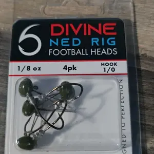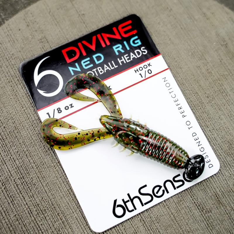 The 6th Sense Divine Ned Football Jig Head was developed by our pros as the ultimate all-purpose finesse application. Designed with a football shaped head and dual wire weed guards, the Ned Finesse will simply stay hung less, but maintain posture, all while getting more bites. The football shaped head allows for more bottom contact, which in turn, will give you a more sensitive feeling on the bottom. A premium, sticky black nickel hook was chosen as the perfect blend between light line and long cast hook set conditions. Nothing was overlooked in the design of this Ned Head, as we wanted to build the best finesse jighead on the market— and we think you will agree.