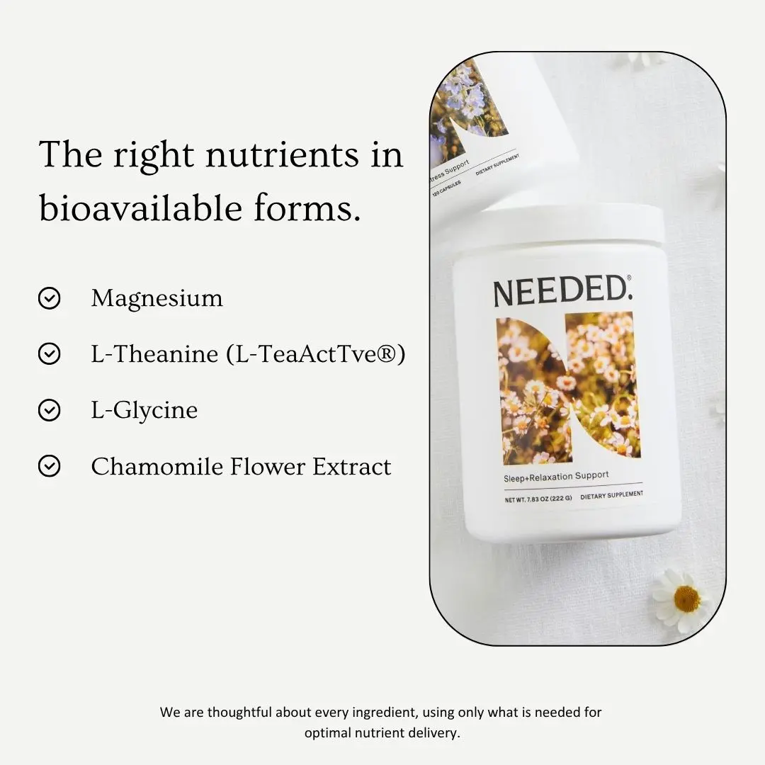 Enhance your sleep quality with magnesium and support relaxation with L-Theanine. Invest in Needed's powder to support your sleep and relaxation journey.