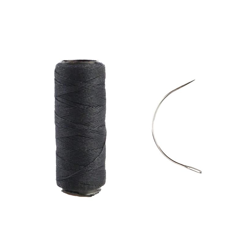 4. Full Shine Needle and Thread ,Thick Polyester Thread for Wig Making & Hair Extension Sewing, Black, 1 Pcs Curved Needles