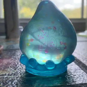 Suuper solid squish like the old nice cubes have. The stand is pretty neat and I like the glitter in the drop. Is has a nice hand feel and is overall a nice squish.